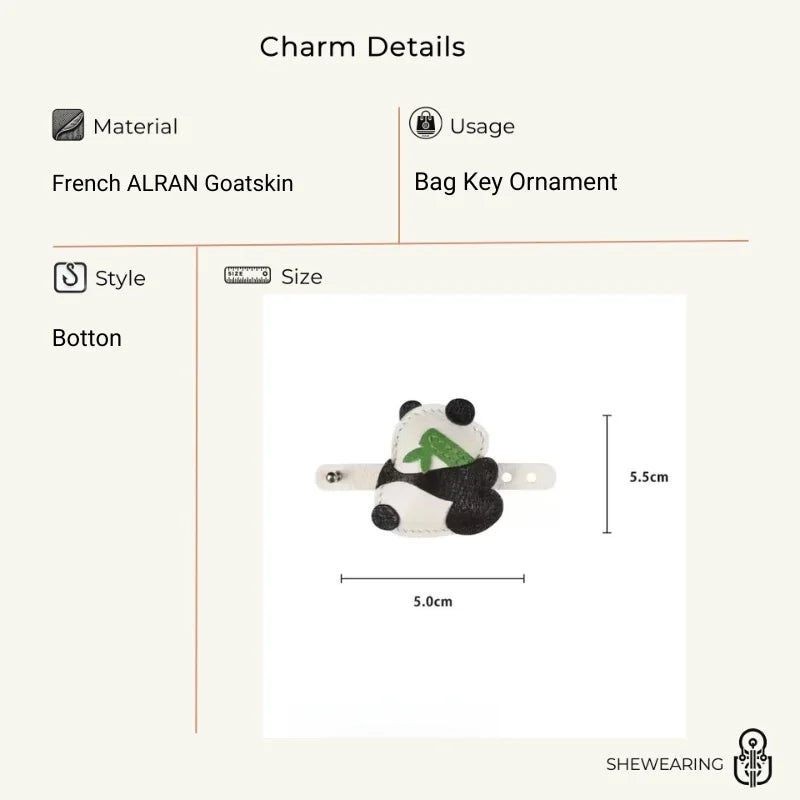 Channel calm strength and subtle charm with this Bamboo-Hugging Panda Leather Bag Charm. Lovingly handcrafted from premium full-grain leather, the design captures a serene panda gently holding a stalk of bamboo—an emblem of prosperity, grace, and gentle resilience in many cultures.