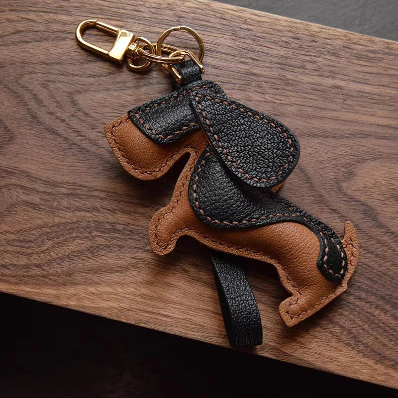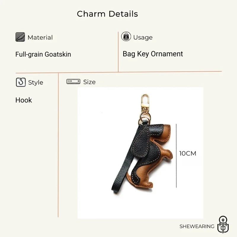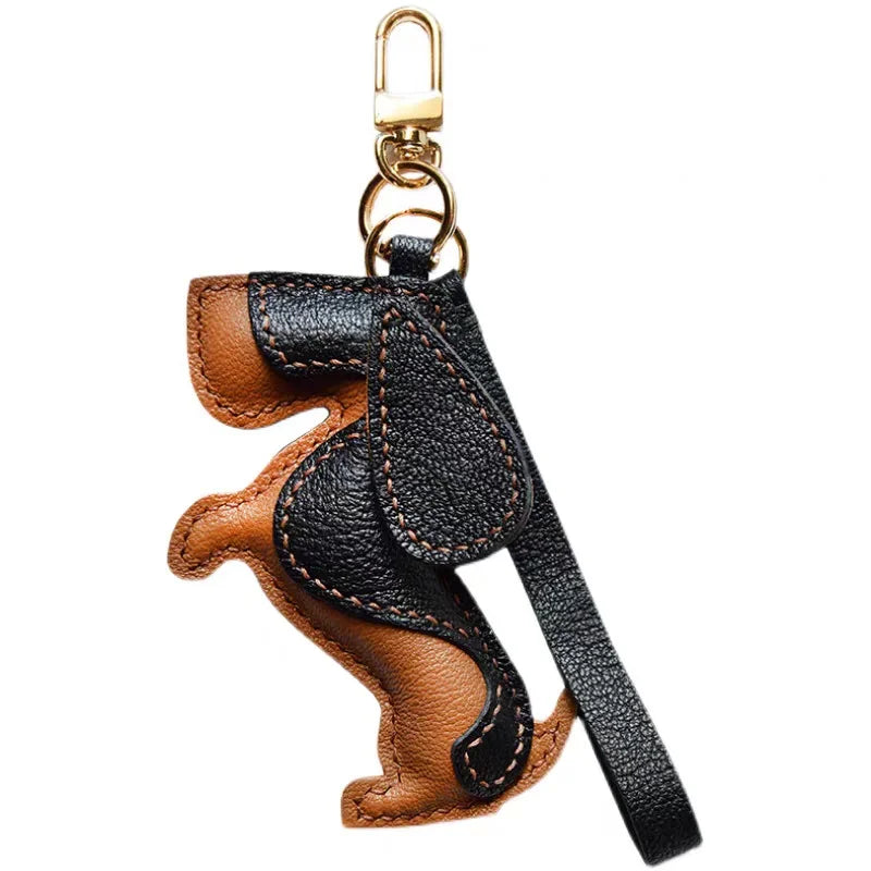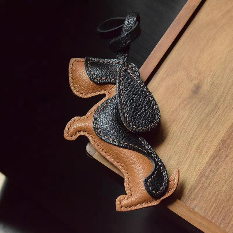 Basset Hound Leather Bag Charm – Handmade Full-Grain Lambskin Pendant | Long-Eared Dog Keychain | Artisan Gift for Pet Lovers
