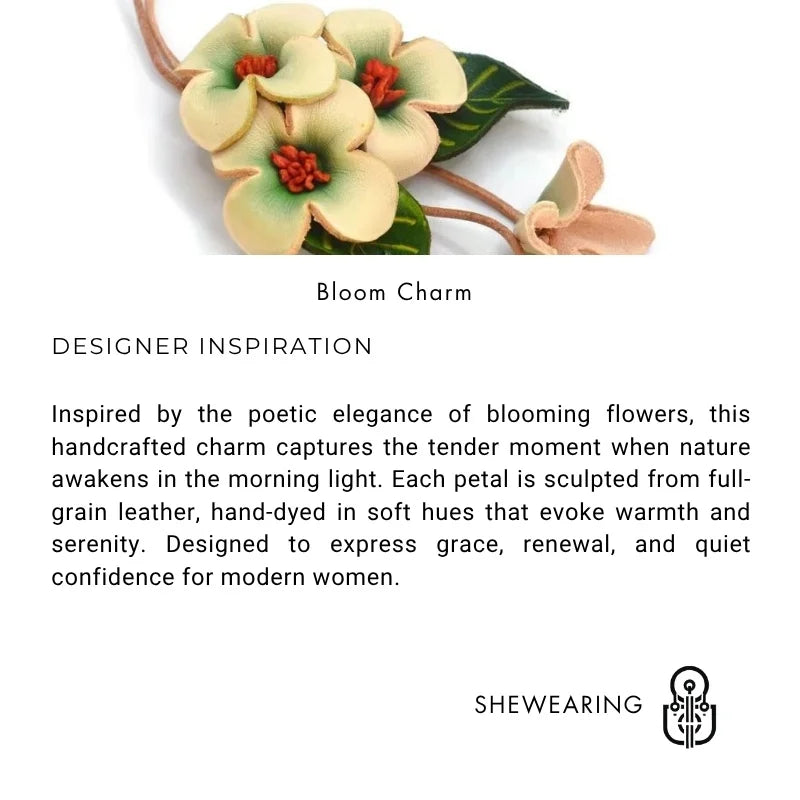 Handcrafted from premium full-grain leather, the Bloom of Love Bag Charm embodies the beauty of nature through delicate craftsmanship. Each petal is meticulously cut, shaped, and shaded by hand, giving it a lifelike texture and soft three-dimensional form. The gentle color gradients—available in four refined tones—add a fresh and sophisticated touch to any handbag or journal.