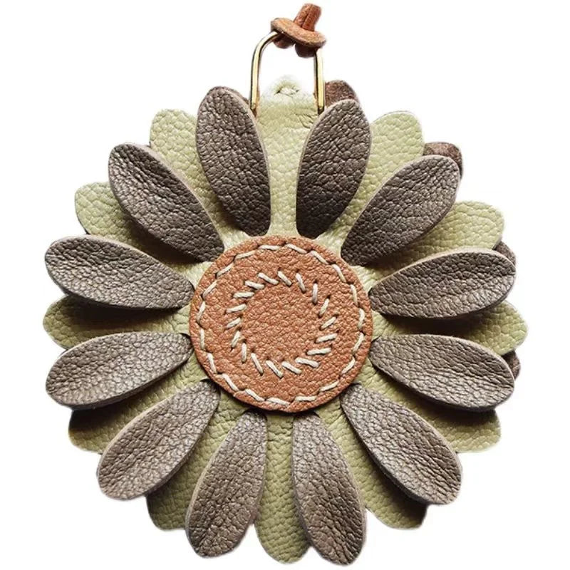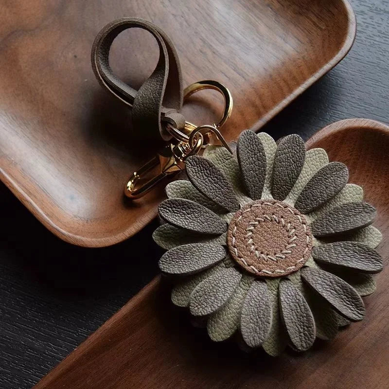 Blossom Leather Bag Charm – Handmade Full-Grain Cowhide Floral Pendant | Minimalist Artistic Keychain | Elegant Gift for Handbags & Cars