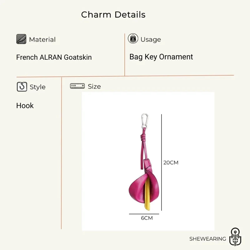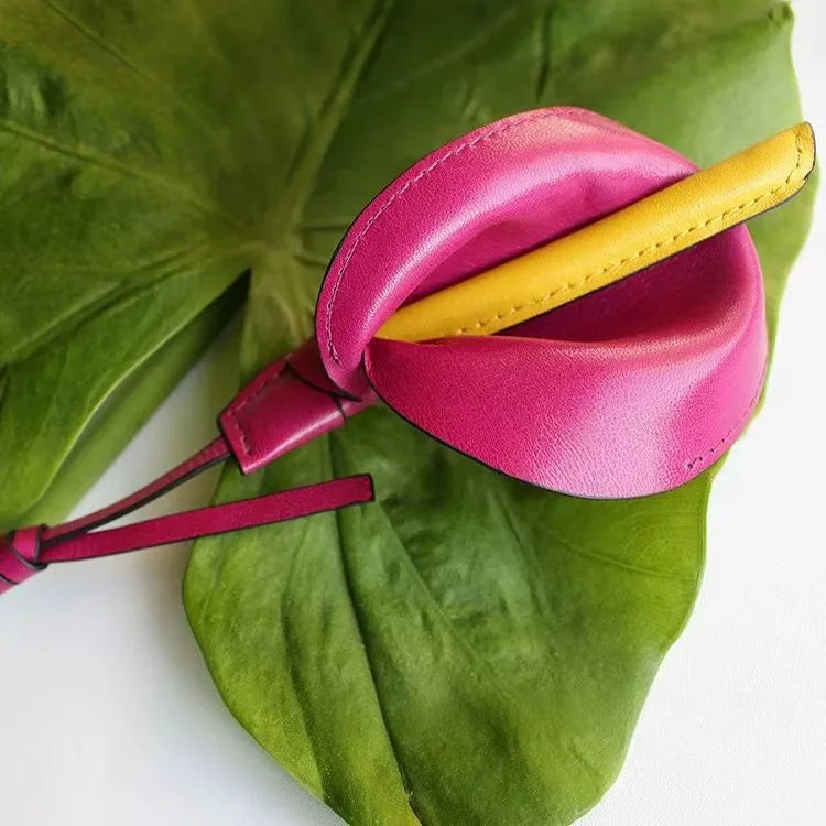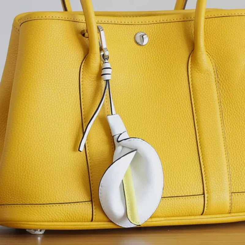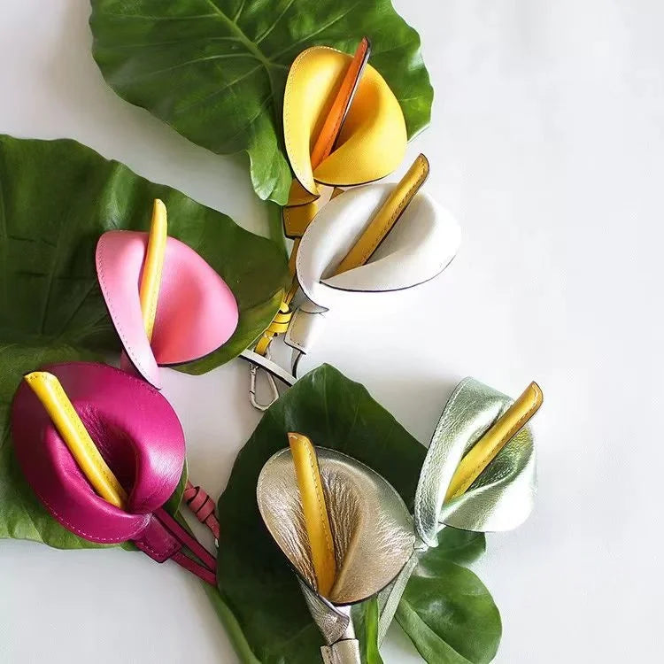 Elevate your handbag with the timeless elegance of our Calla Lily Leather Bag Charm. Expertly handcrafted from genuine full-grain leather, each charm is designed to mirror the natural beauty of blooming calla lilies. The smooth, sculptural petals are paired with a contrasting center detail, creating a striking accessory that blends artistry with sophistication.