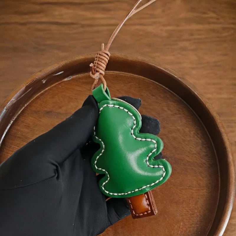 Christmas Tree Leather Bag Charm – Handmade Full-Grain Cowhide Pendant | Vintage Festive Keychain | Classic Holiday Gift for Handbags
