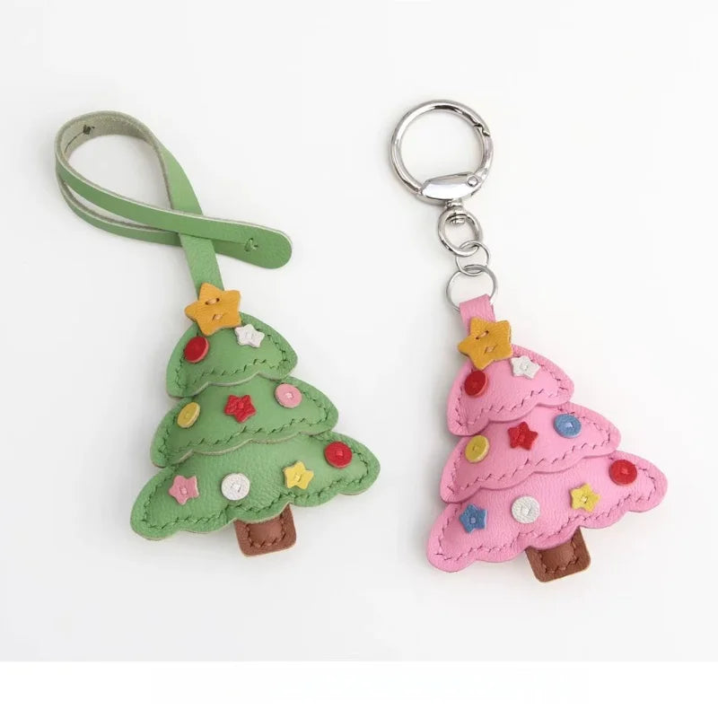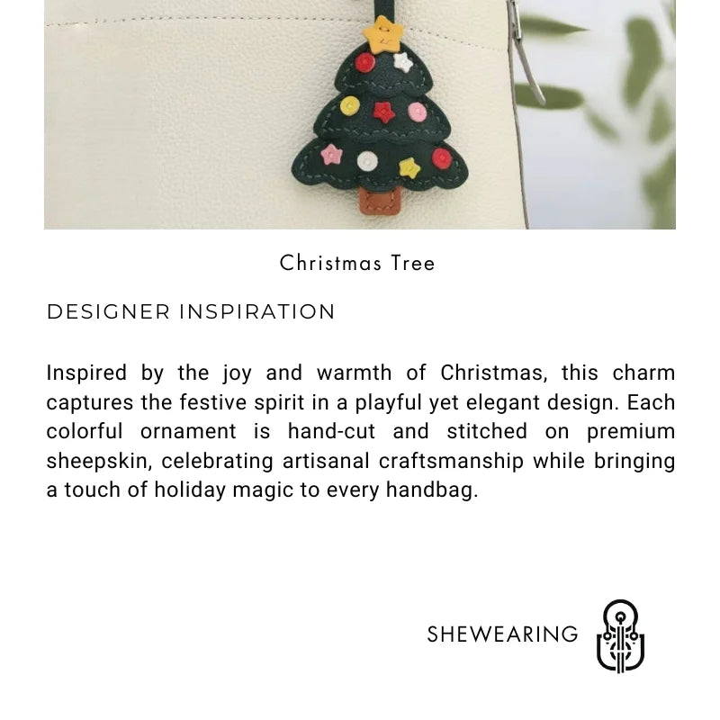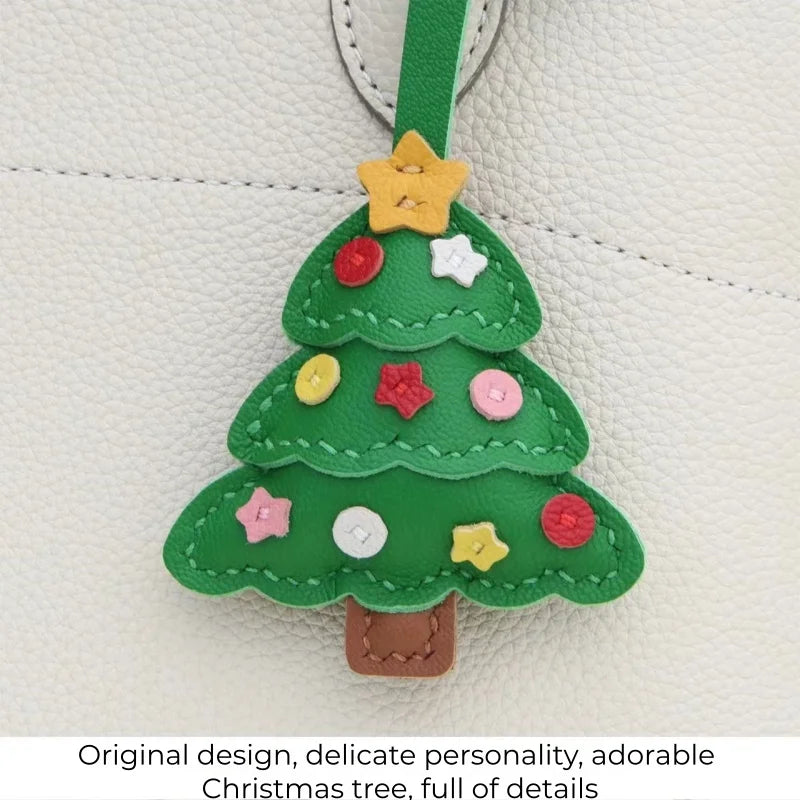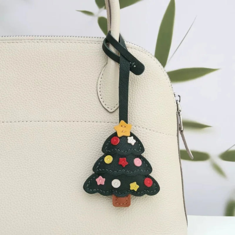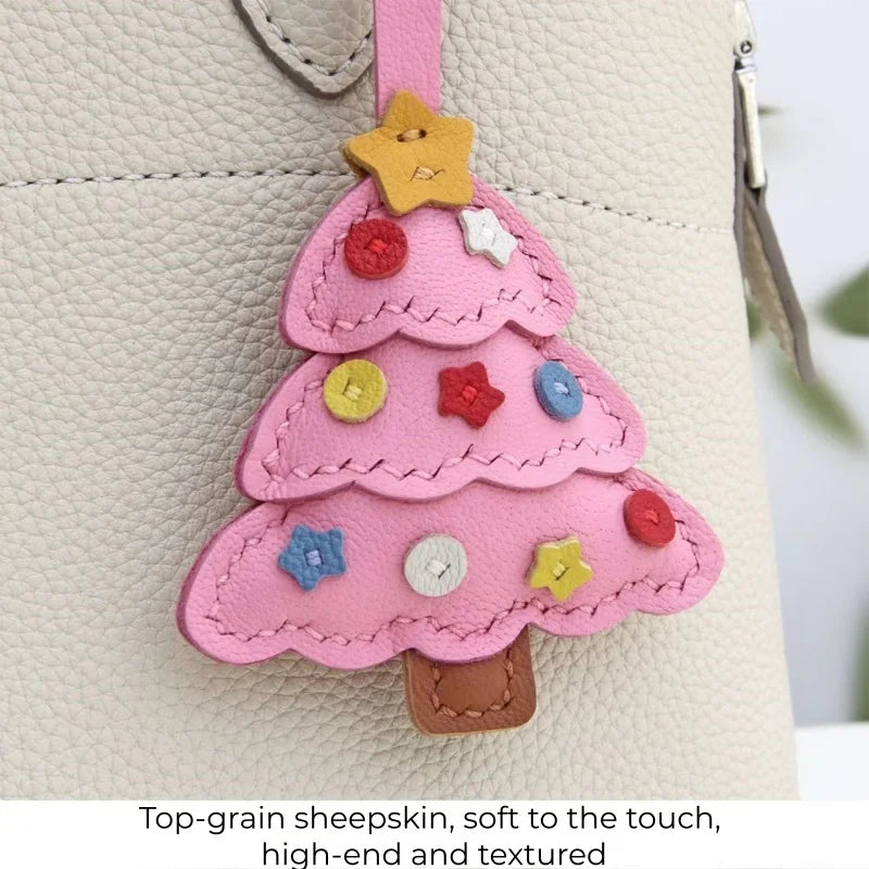 Christmas Tree Leather Bag Charm – Handmade Sheepskin Pendant | Festive Holiday Accessory | Hand-Stitched Keychain & Handbag Ornament