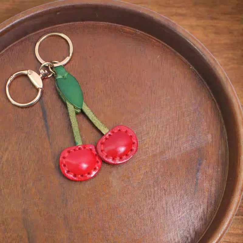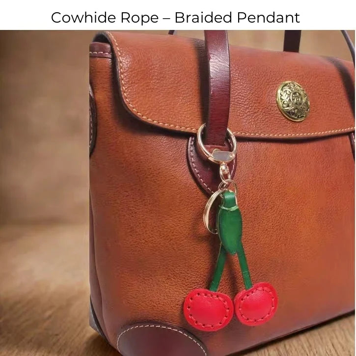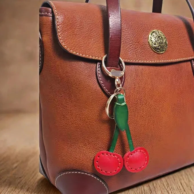 Classic Cherry Leather Bag Charm – Handmade Full-Grain Cowhide Pendant | Artisan Double-Cherry Keychain | Whimsical Accessory for Handbags & Gifts