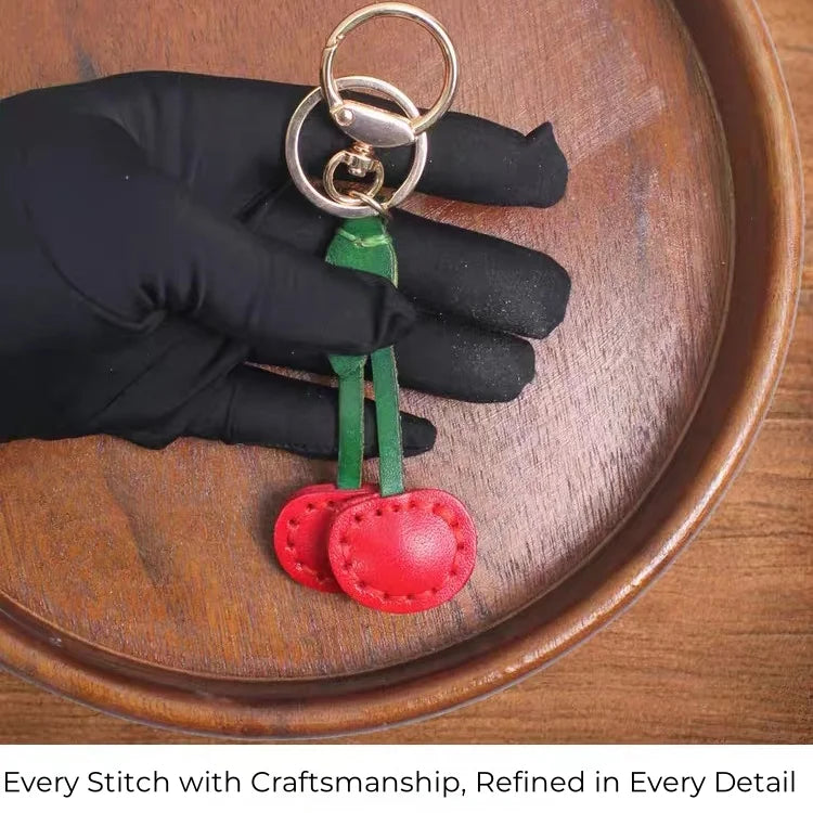 Bring a cheerful burst of character to your favorite accessories with this Classic Cherry Leather Bag Charm. Featuring two plump cherries crafted from full-grain cowhide leather, this charm is designed to celebrate craftsmanship and simplicity. Each cherry is hand-cut and hand-stitched, resulting in a uniquely textured finish that feels both nostalgic and fresh.