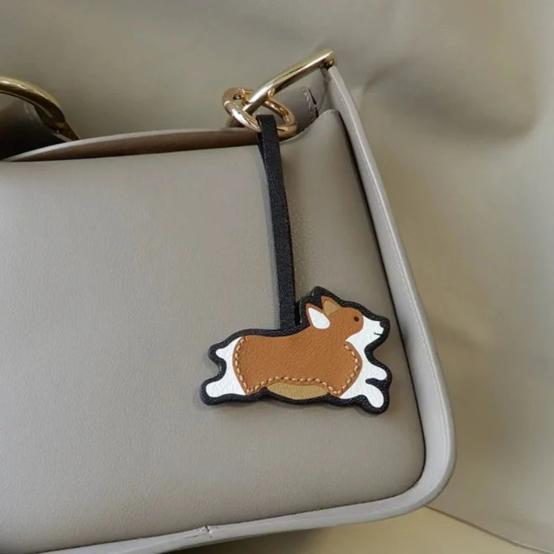 Corgi Leather Bag Charm – Handmade French Sheepskin Keychain | Playful Dog-Inspired Pendant | Whimsical Gift for Pet Lovers