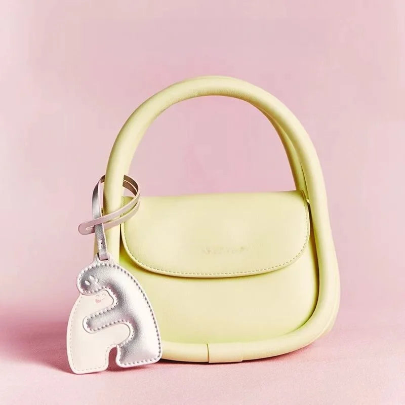 Measuring approximately 8.8 cm in height with a 17.5 cm strap, the Hugging Charm is lightweight and versatile. It can be used as a handbag ornament, a keychain, or a thoughtful gift for someone special. Available in pink and metallic tones, it pairs beautifully with both casual and refined handbags, adding a touch of personality and emotional warmth.