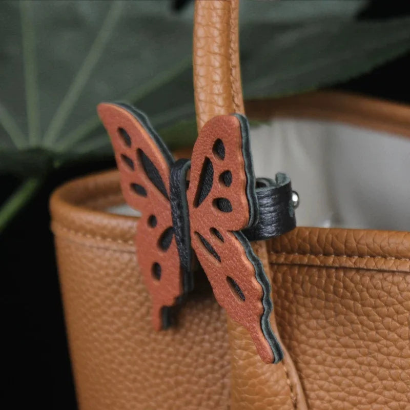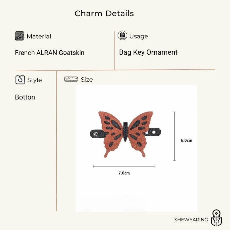 Dancing Butterfly Leather Bag Charm – Handmade Graceful Insect Pendant | Elegant Cowhide Accessory | Whimsical Gift for Women