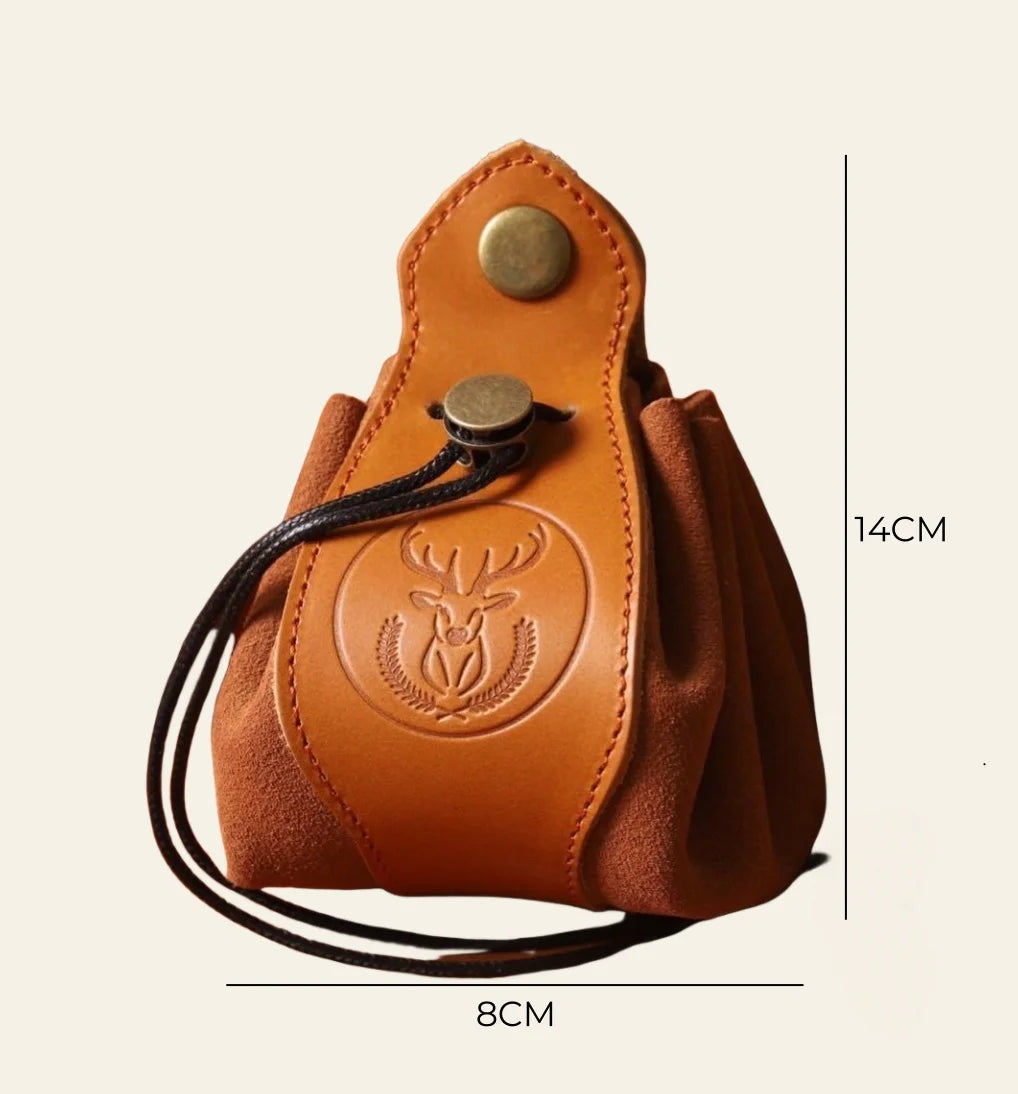 Crafted from premium full-grain leather, this Deer Emblem Leather Lipstick Charm is a perfect fusion of artistry and practicality. Featuring a finely embossed deer motif, the design reflects natural beauty and symbolic strength, making it more than just an accessory—it is a statement piece. Measuring approximately 14 cm in height and 8 cm in width, the pouch is compact yet versatile, ideal for storing lipstick, coins, earbuds, or other small essentials. Its durable leather construction ensures longevity, while the drawstring closure provides secure and easy access. With meticulous hand-stitching and a rustic finish, it embodies slow-living values and artisan dedication. Suitable for both men and women, this leather charm doubles as a thoughtful gift, blending refined design with functional everyday use. Whether attached to a handbag, used as a key holder, or carried alone, it adds a touch of elegance and heritage-inspired character to any lifestyle.