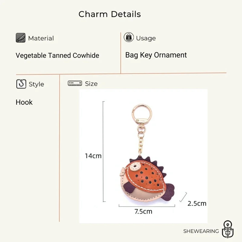 Each detail is thoughtfully constructed—from the layered leather body to the softly contoured fins—resulting in a tactile, three-dimensional form that adds personality to handbags, totes, backpacks, or keys. The vegetable-tanned leather develops a rich patina over time, making every piece uniquely personal as it ages with use.