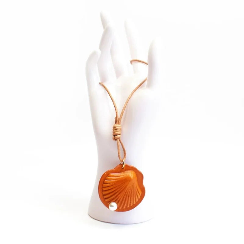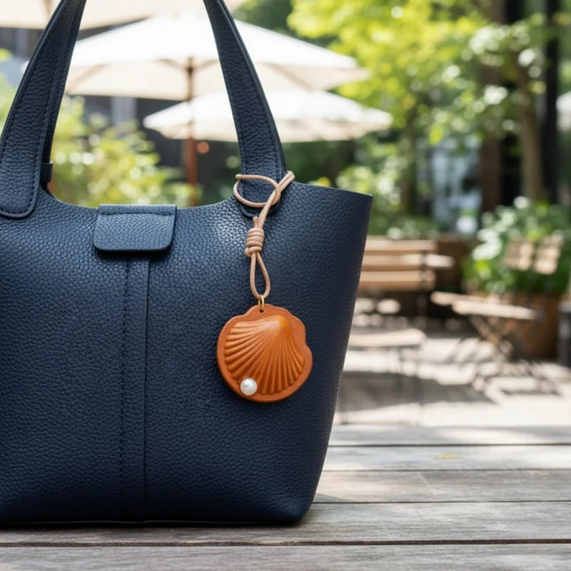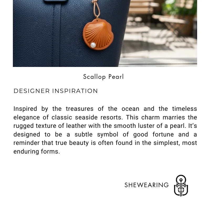 Introduce a touch of classic, nautical elegance to your collection with The Scallop Pearl Charm. Handcrafted from premium full-grain cowhide, this charm features a beautifully pressed shell motif that delivers stunning, dimensional detail. The double-sided design ensures a flawless look from any angle, making it an exquisite companion for any high-end handbag.