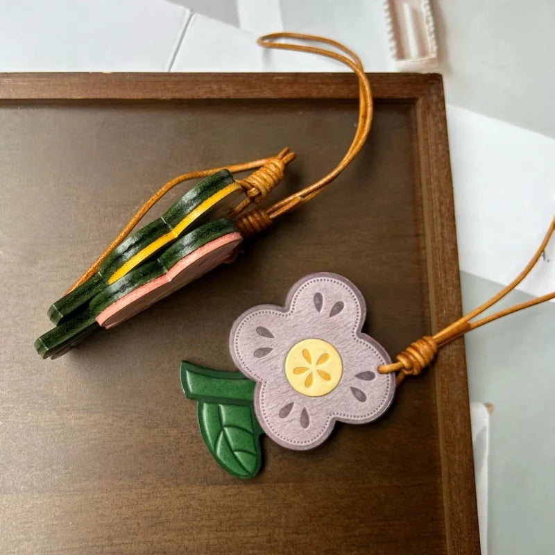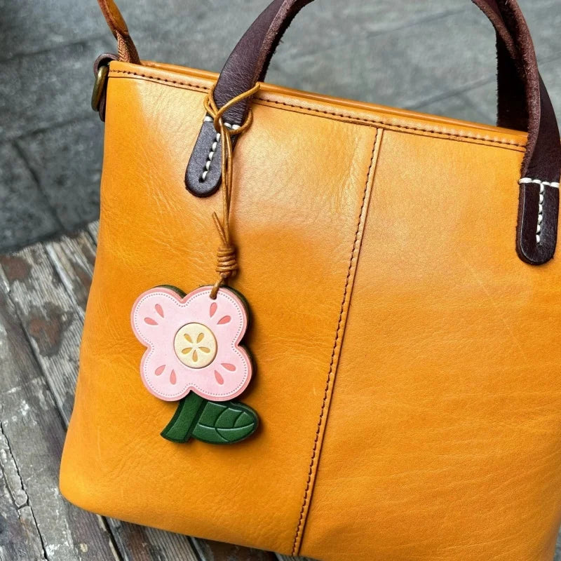 This Four-Leaf Clover Leather Bag Charm is handcrafted from premium full-grain leather, carefully stitched to create a layered floral form with depth and character. Unlike mass-produced accessories, each piece reflects the natural texture and warmth of genuine leather, making every charm subtly unique.