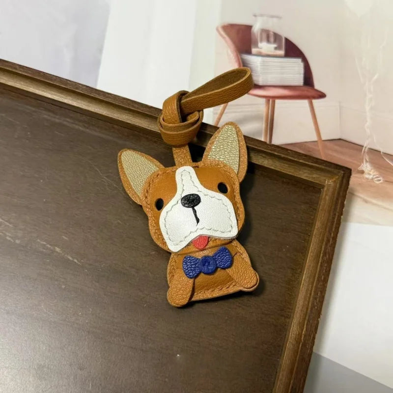 French Bulldog Leather Bag Charm – Handmade French Goatskin Pendant | Cute Dog Keychain Gift | Handcrafted Backpack Accessory for Couples & Pet Lovers