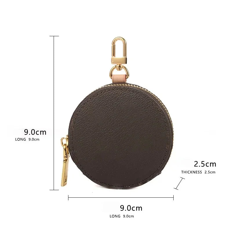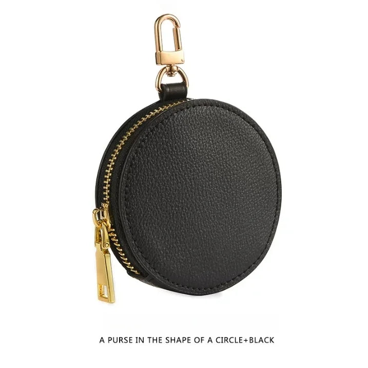 Genuine Leather Round Mini Bag Charm – Luxury Circle Coin Purse & Lipstick Holder | Elegant Accessory for Handbags & Crossbody Straps