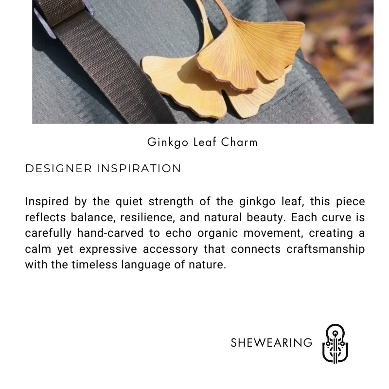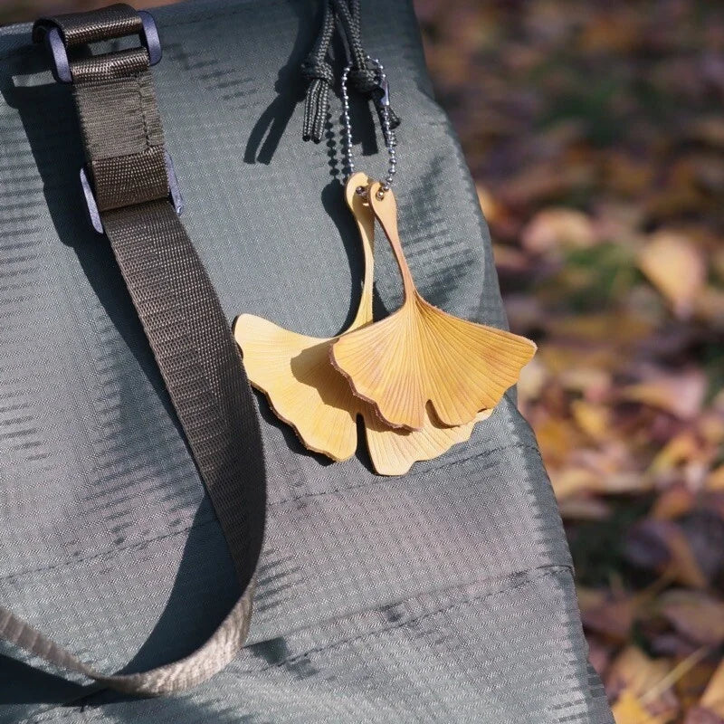 Ginkgo Leaf Leather Bag Charm – Hand-Carved Natural Style Pendant | Artisanal Backpack & Handbag Accessory | Elegant Gift for Her