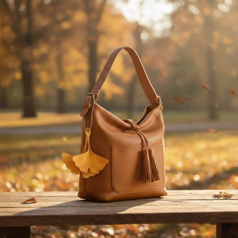 This handcrafted ginkgo leaf leather bag charm is designed for women who appreciate nature-inspired forms and understated elegance. Made from high-quality leather and shaped through detailed hand-carving, each leaf reveals fine vein textures and softly curved edges that mirror the organic beauty of real ginkgo leaves.