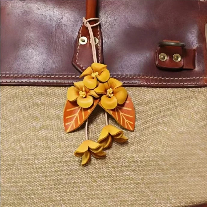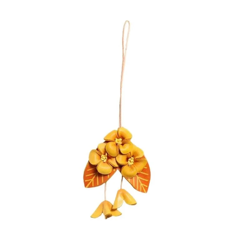 Golden Osmanthus Leather Bag Charm – Handmade Full-Grain Cowhide Floral Pendant | Autumn-Inspired Keychain | Unique Gift Accessory for Women
