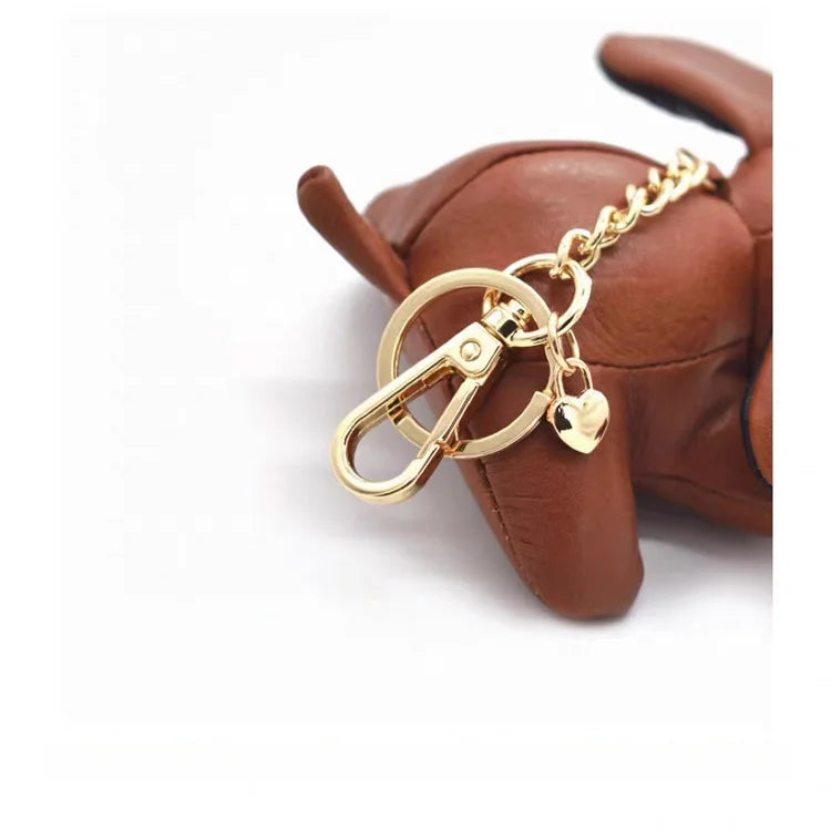 Handcrafted 3D Leather Puppy Bag Charm – Nordic Style Genuine Leather Dog Keychain | Cute Handbag Pendant Accessory | Creative Gift for Her