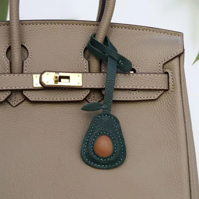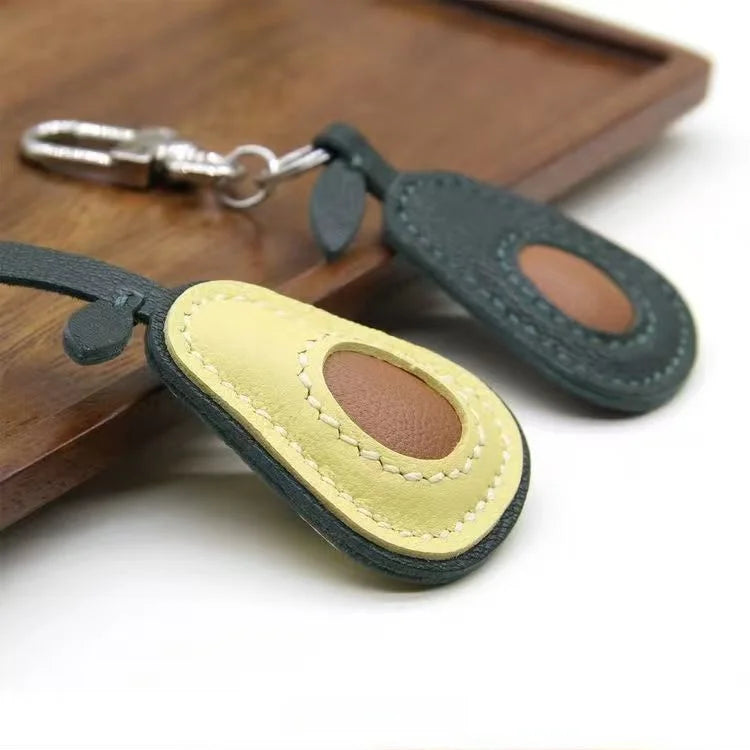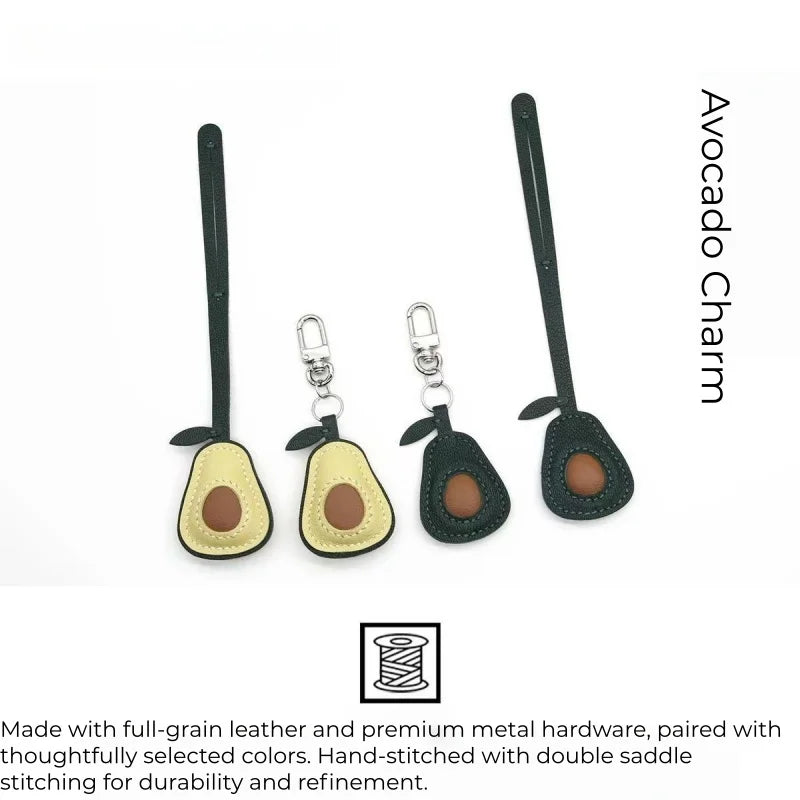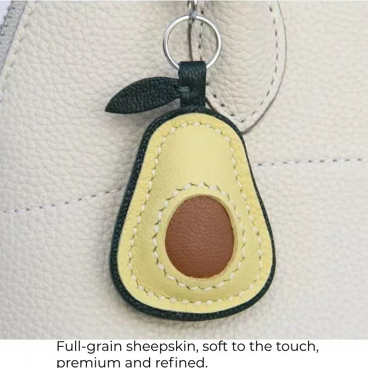 Handcrafted Avocado Leather Bag Charm – Original Design in Full-Grain Sheepskin | Cute Minimalist Pendant for Handbags & Keychains | Handmade Gift for Women