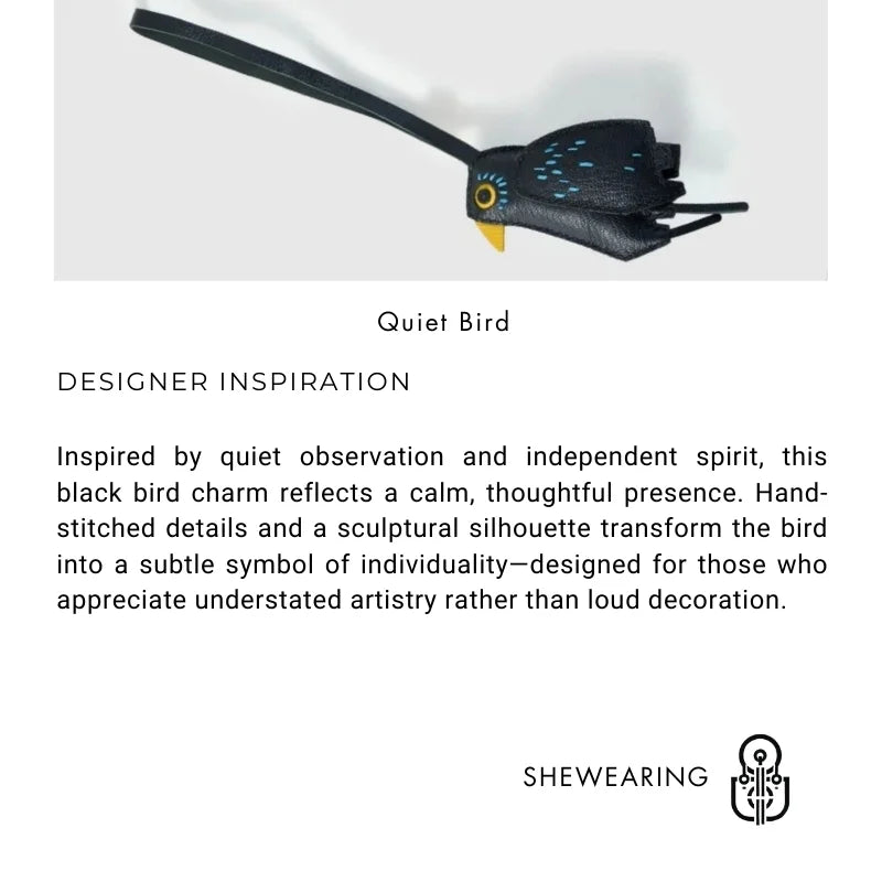 This handcrafted black bird leather bag charm is a refined accessory created for women who value individuality, artistry, and subtle expression. Rather than playful or decorative, the bird is interpreted here as a quiet companion—symbolizing independence, awareness, and calm confidence.
