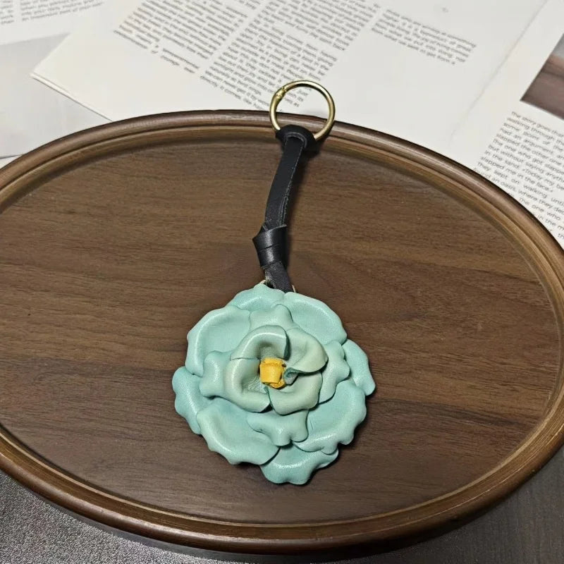 Handcrafted Blooming Rose Leather Bag Charm – Full-Grain Cowhide 3D Floral Pendant | Elegant Countryside-Inspired Handbag Accessory