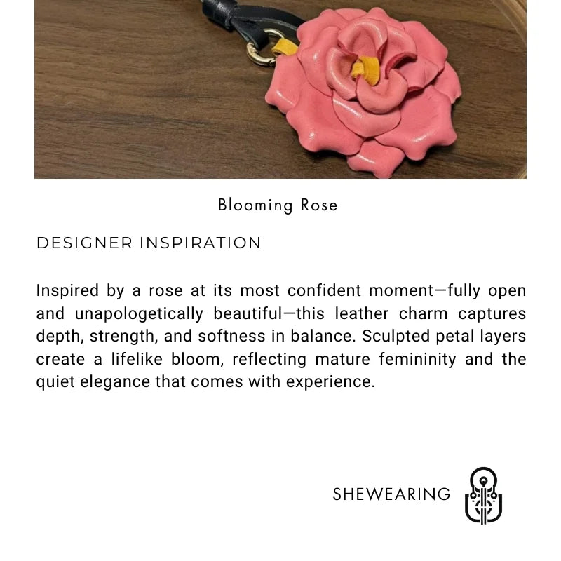 Crafted from premium full-grain cowhide, the Blooming Rose bag charm celebrates femininity in its most refined form. Each petal is individually shaped and layered by hand, creating a dimensional rose that feels sculptural rather than decorative. The gentle curvature and depth give the flower a natural, lifelike presence.
