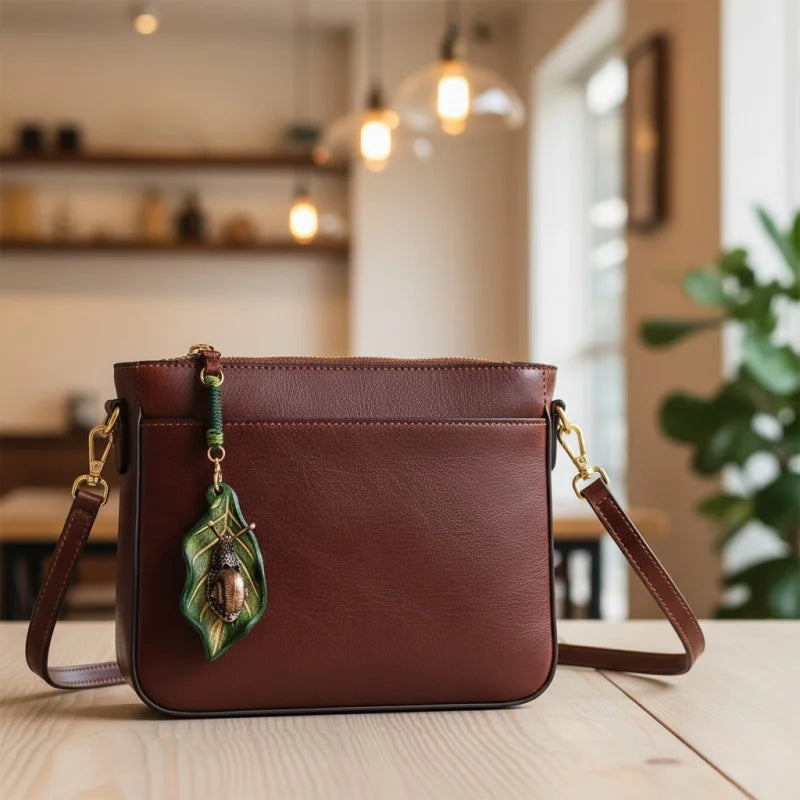 This Handcrafted Leather Leaf & Bronze Snail Bag Charm is a celebration of artistry and the quiet wonders of nature. The lush, hand-shaped leather leaf brings vibrant texture and lifelike veins, while the sculpted bronze snail adds a charming, whimsical touch with its delicate craftsmanship. Each piece is entirely handmade, making every charm one-of-a-kind. It’s not only a stunning accessory for your handbag, backpack, or keys, but also a delightful gift for nature lovers and those who value creative details. The durable clasp and cord ensure easy attachment and lasting use. Add this unique accent to your collection and let it remind you to appreciate life’s gentle pace—one beautiful step at a time.