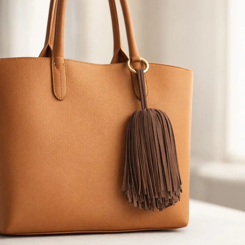 Available in multiple rich colors—from warm neutrals to bold statement shades—this tassel charm complements a wide range of personal styles. Whether paired with a structured leather tote or a casual everyday bag, it adds warmth, dimension, and personality.