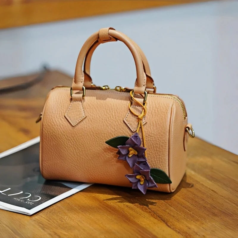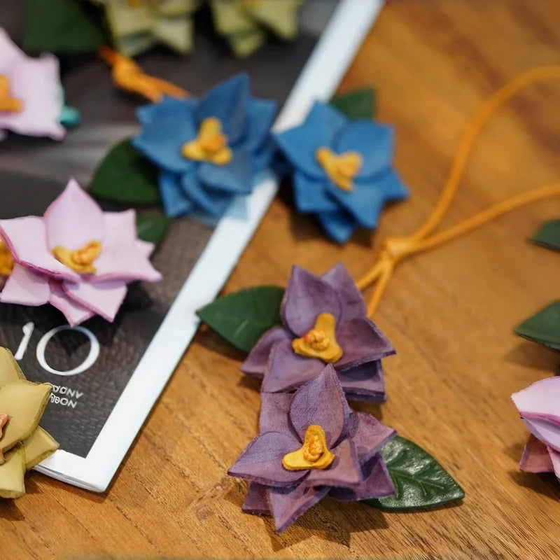 Crafted from premium waxed cowhide leather, this double-flower bag charm brings a sculptural floral presence to your handbag. Each petal is individually cut, layered, and shaped by hand, creating natural depth and dimension. The soft waxed finish enhances texture while allowing the leather to develop a gentle patina over time.