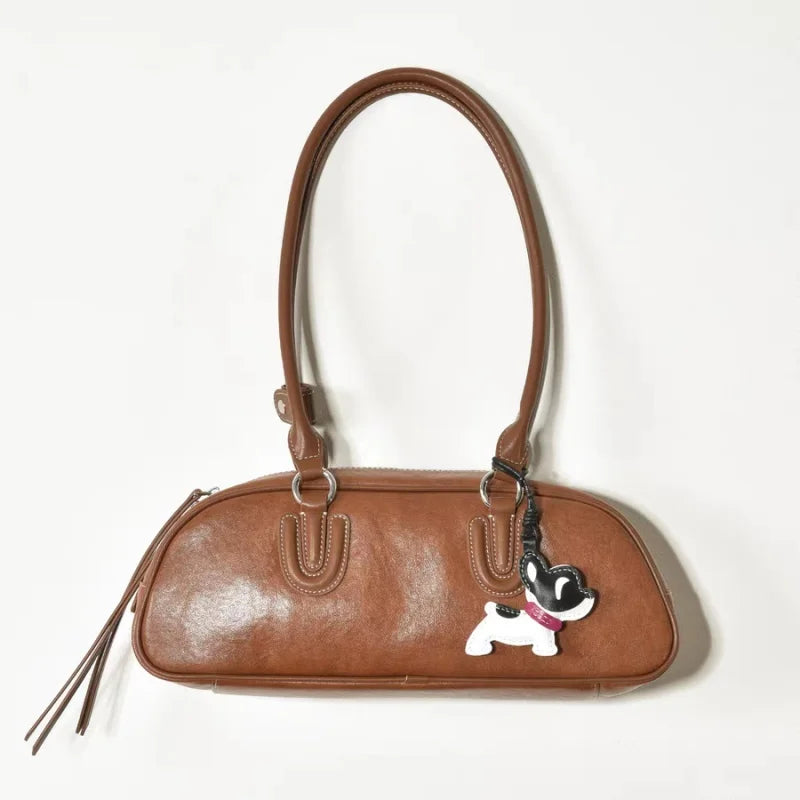 Each charm is individually hand-stitched, highlighting the natural texture and softness of genuine leather. The charming Frenchie silhouette, paired with subtle color contrast and a delicate collar detail, creates a balanced look that feels both cute and refined. Unlike mass-produced accessories, this handcrafted piece carries the subtle character and craftsmanship that make handmade leather goods special.