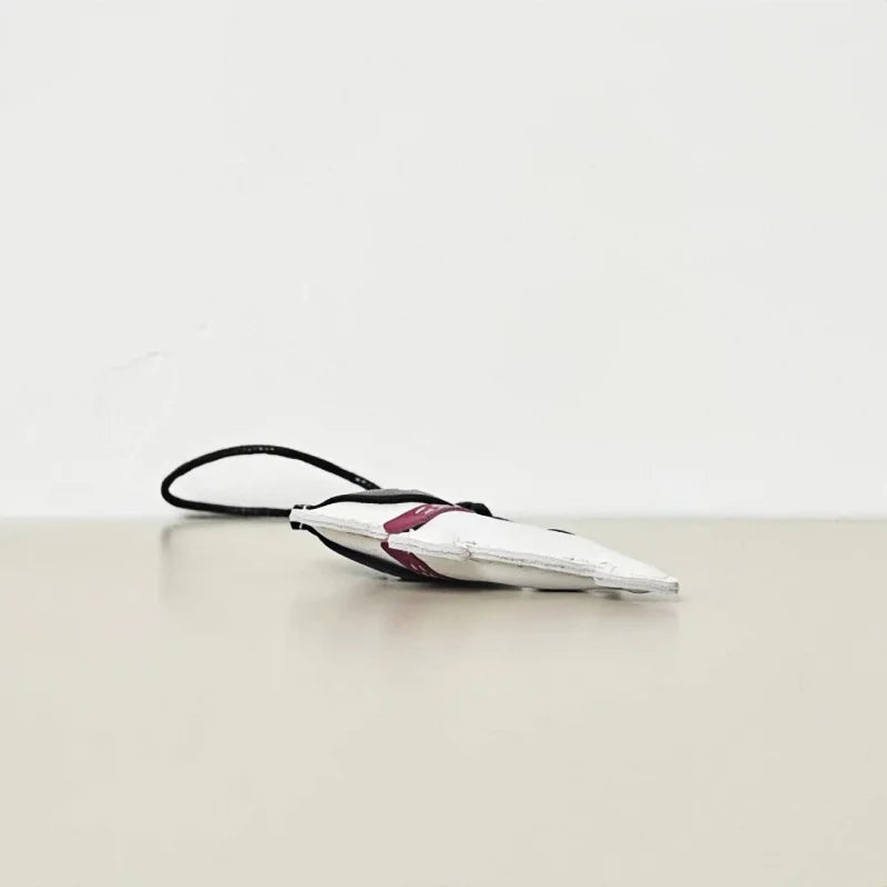 Lightweight yet durable, the charm easily attaches to tote bags, shoulder bags, backpacks, or keys using its flexible leather cord loop. Its playful shape adds a touch of individuality without overpowering the clean elegance of your bag.