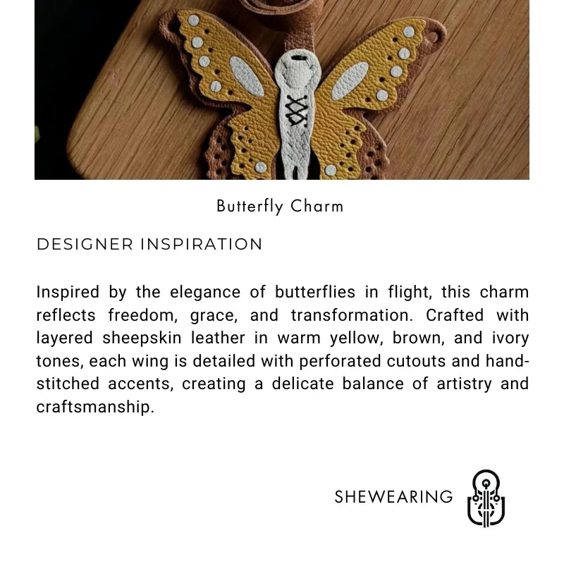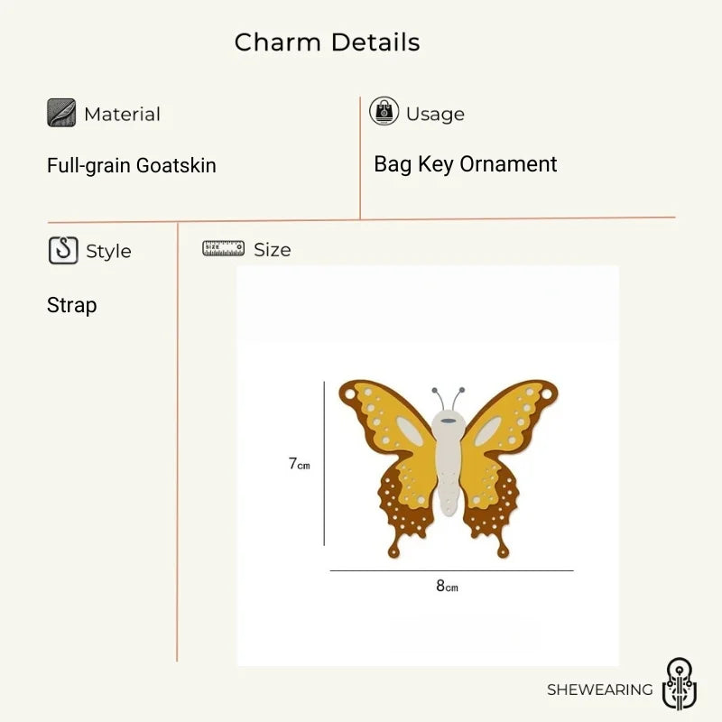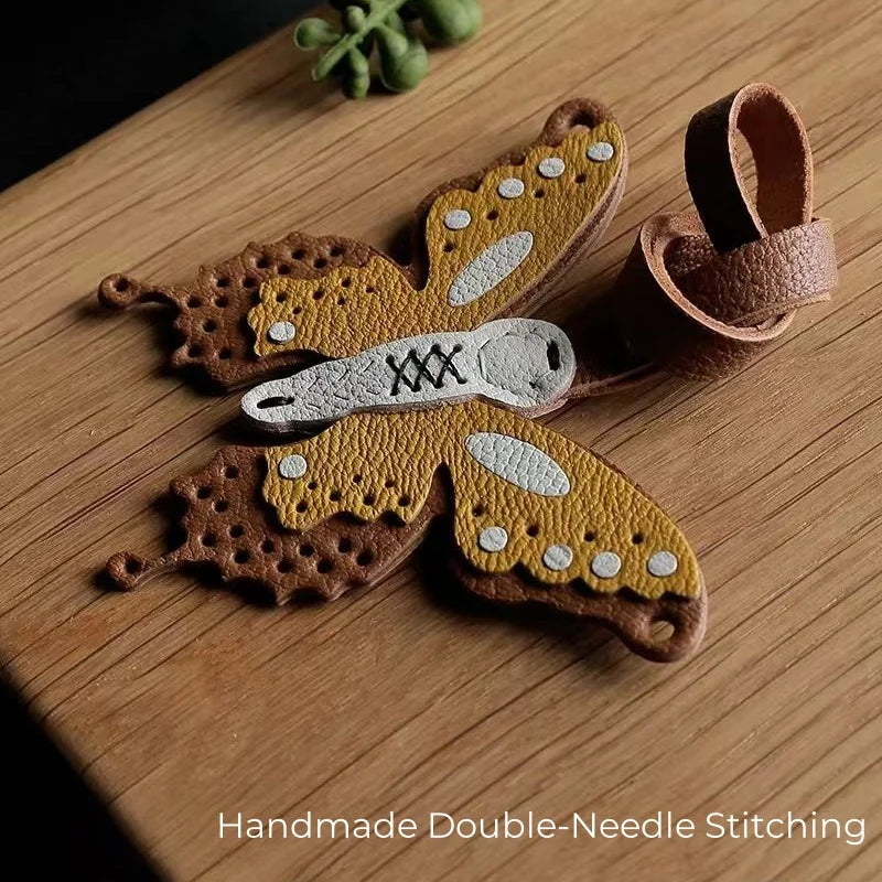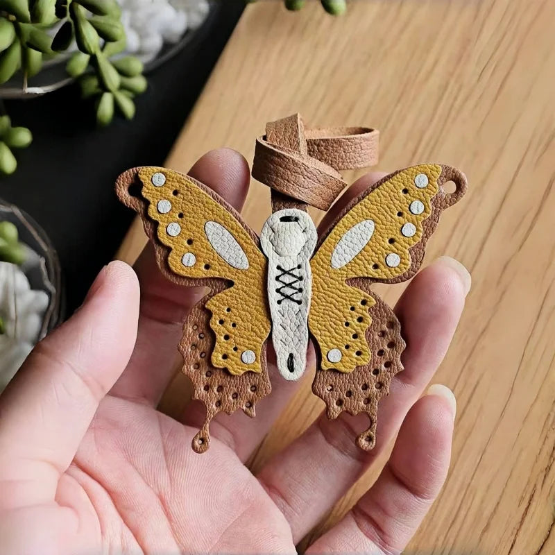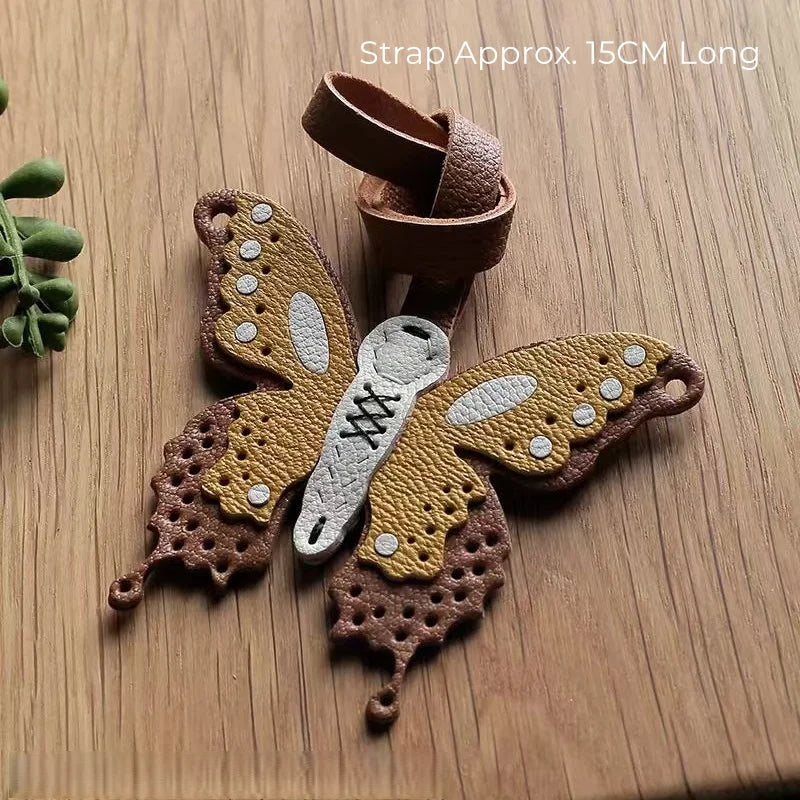 Handmade Leather Butterfly Bag Charm – Artisan Sheepskin Pendant & Keychain | Intricate Cutout Design | Luxury Handbag Accessory & Couple Gift