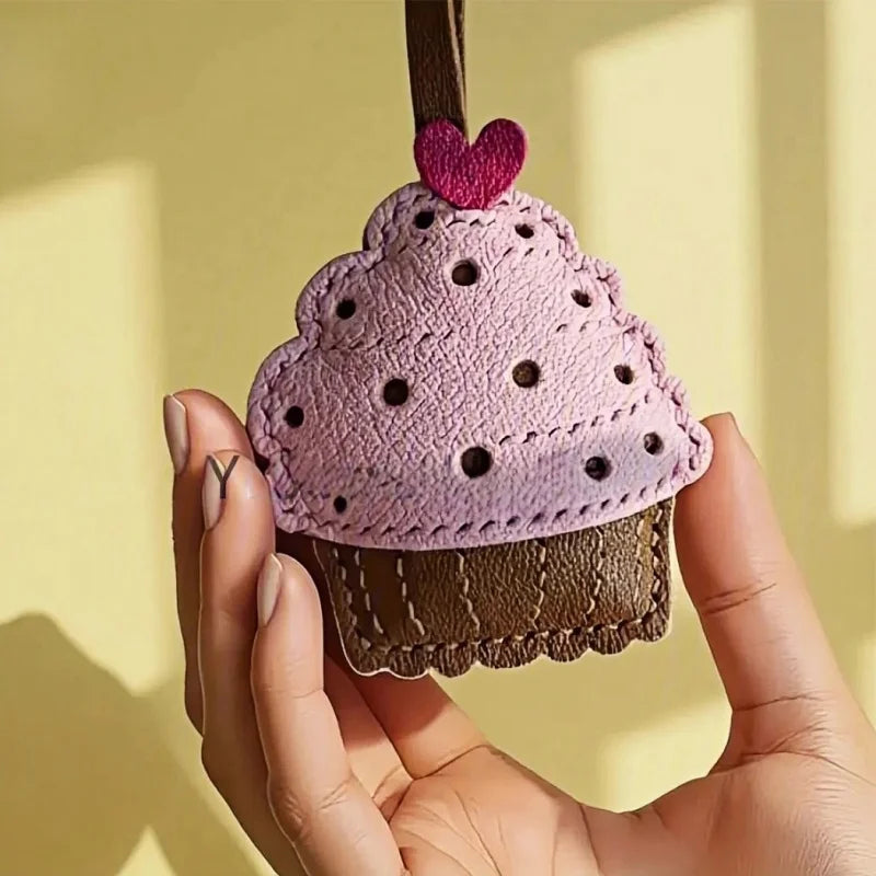Handmade Leather Cupcake Bag Charm – Handcrafted Genuine Leather Pendant & Keychain | Cute Artistic Accessory for Handbags | Thoughtful Gift for Her