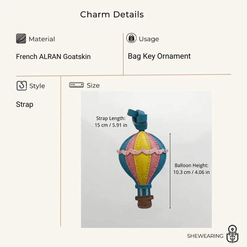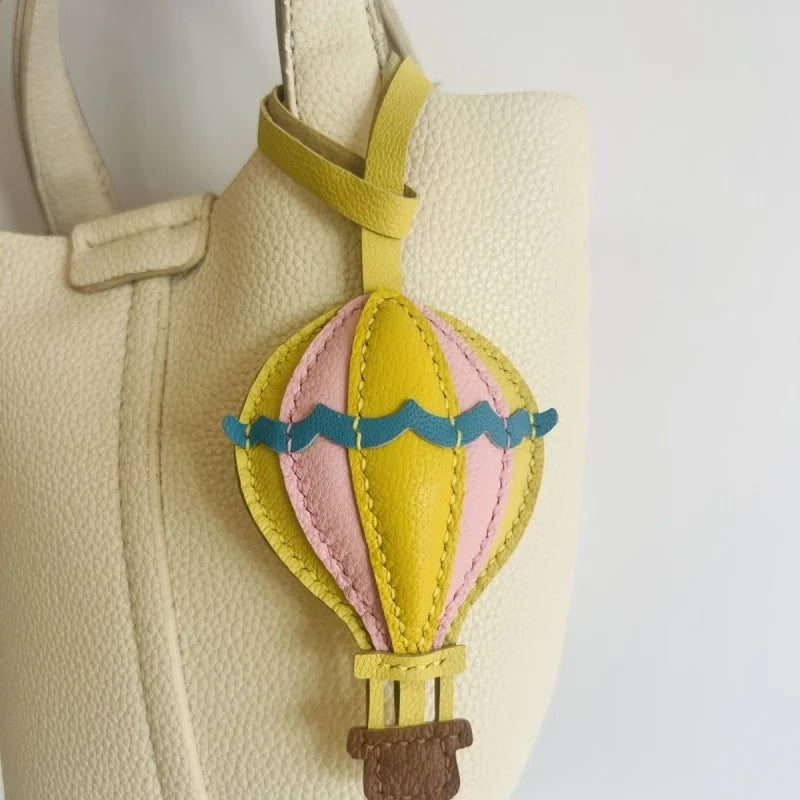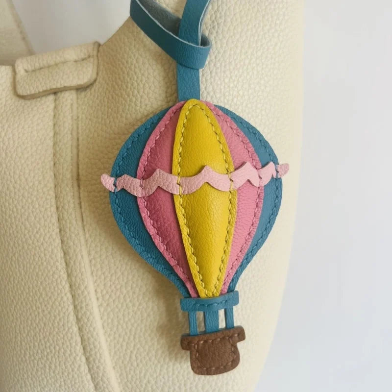 Handmade Leather Hot Air Balloon Bag Charm & Keychain – Artisan Leather Pendant with Soft Color Blocking | Three Color Options | Gift for Her