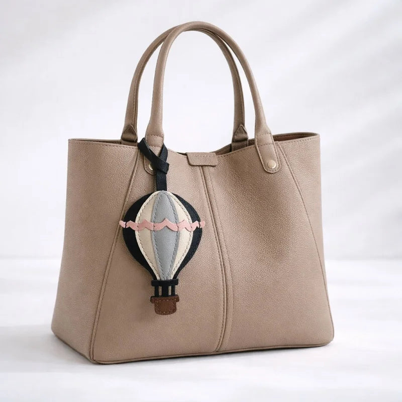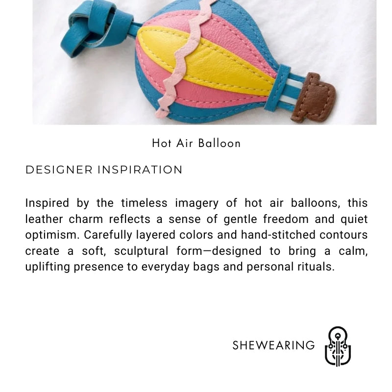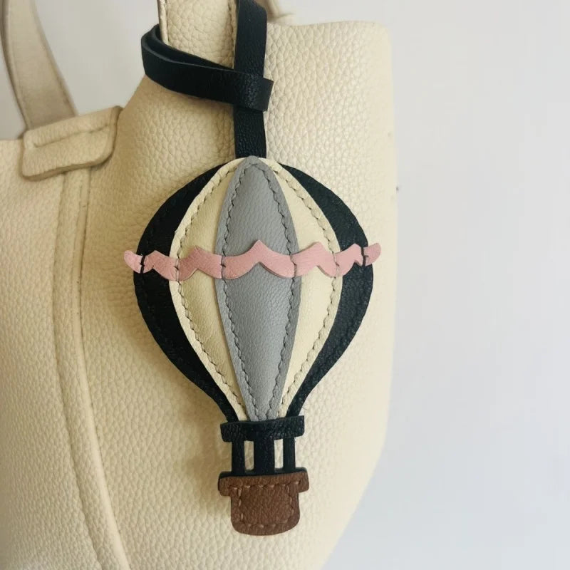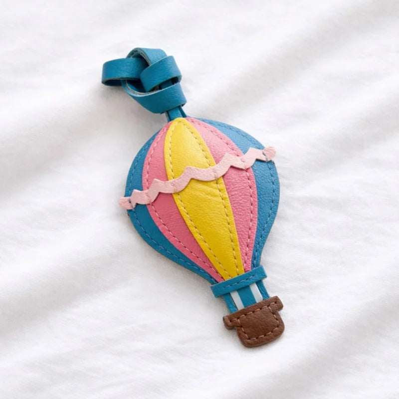 This handmade leather hot air balloon bag charm is a refined expression of lightness, individuality, and slow craftsmanship. Made from carefully selected genuine leather, each charm is cut, layered, and hand-stitched to create a softly sculpted silhouette with subtle depth and texture. The balloon form feels playful yet composed—designed to add character without appearing childish.