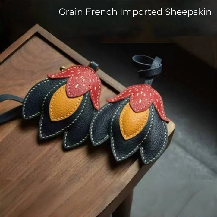 Handmade Leather Tulip Bag Charm – Original Red-Orange & Yellow Petal Design | Full-Grain Leather Pendant & Keychain | Minimalist Artistic Handbag Accessory
