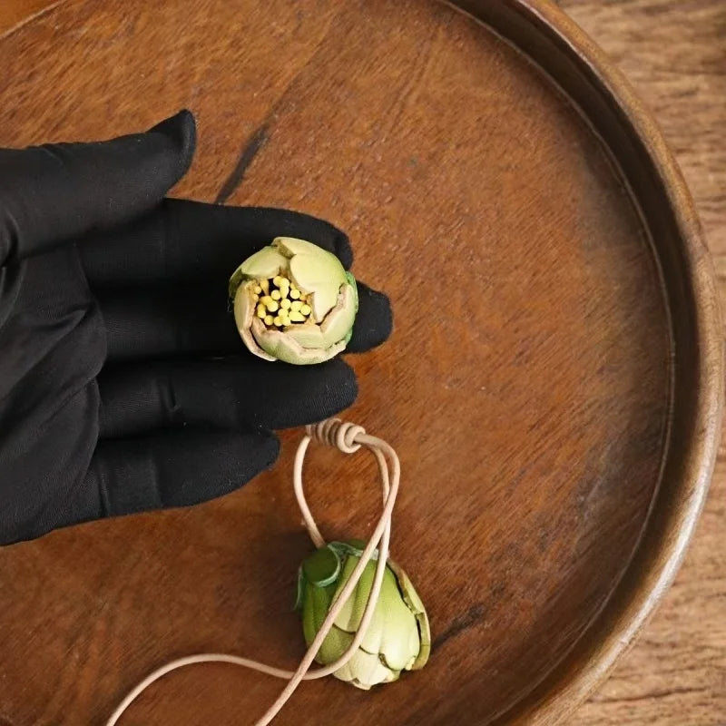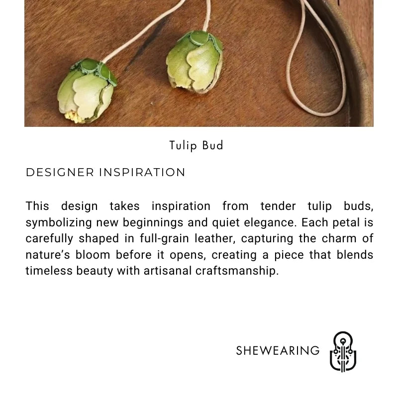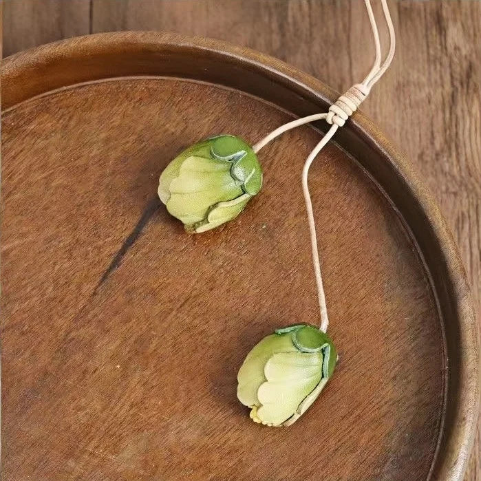 The Handmade Tulip Bud Leather Bag Charm embodies both artistry and meaning, representing growth and elegance in its design. Meticulously crafted from premium full-grain cowhide, it features soft green petals enclosing delicate yellow stamens, giving it the appearance of tulips just before they blossom. Each charm is hand-stitched with precision, ensuring durability and a refined finish. Designed with a natural leather strap, it can be effortlessly attached to handbags, totes, or used as a keychain, offering both versatility and beauty. Measuring approximately 26.5 cm in length, it creates a graceful accent that enhances any accessory. More than a simple decoration, this leather charm reflects the philosophy of slow fashion, where craftsmanship, natural inspiration, and lasting quality are valued. A meaningful gift for women who appreciate floral elegance and artisanal design, it brings the delicate beauty of tulip buds into everyday life.