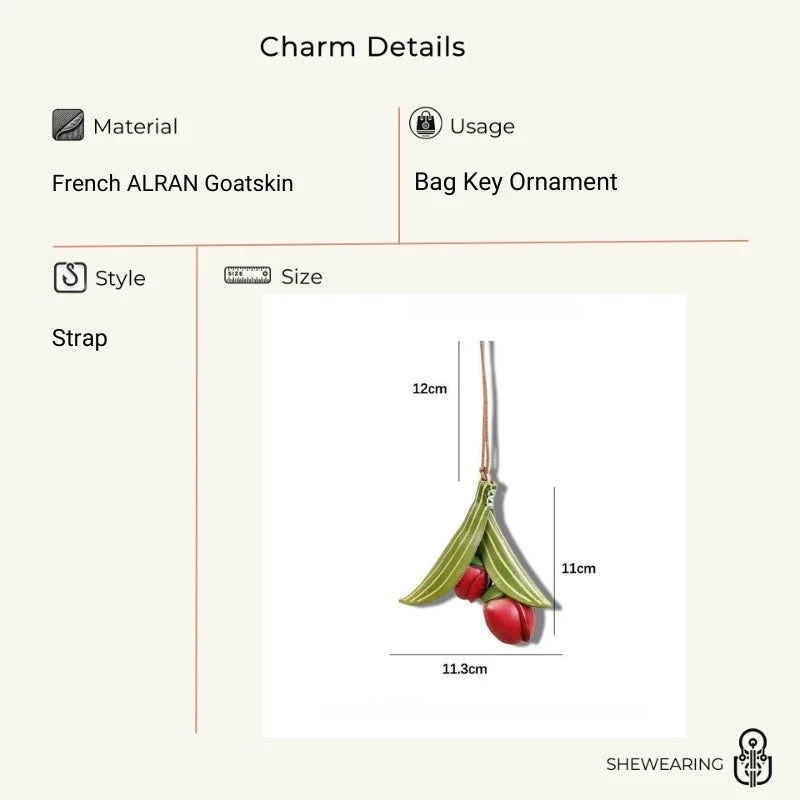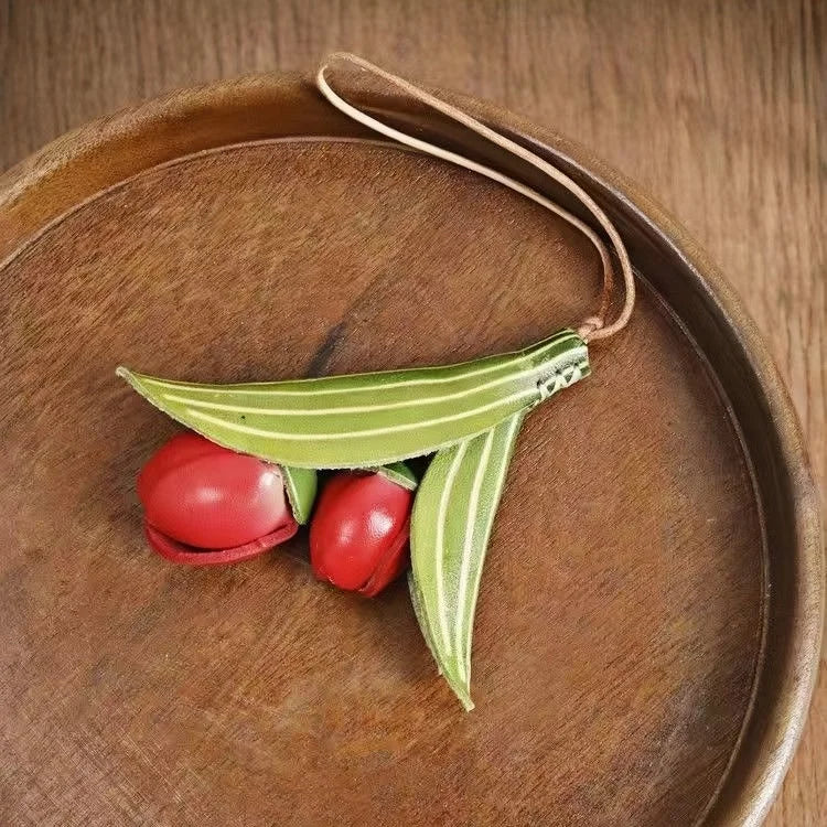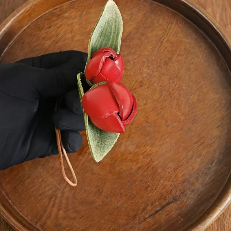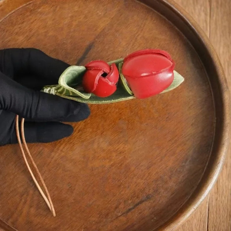 The Handmade Tulip Leather Bag Charm is a statement piece that blends artistry and functionality. Crafted from premium full-grain cowhide, it features vibrant red tulip blossoms and delicately carved green leaves, each detail carefully shaped by skilled artisans. Its unique floral form adds a touch of natural elegance, while the sturdy construction ensures long-lasting quality. Designed with a secure leather strap, this charm can be easily attached to handbags, totes, or key rings, making it both decorative and versatile. More than a simple accessory, it reflects the philosophy of slow fashion, where handmade craft and thoughtful design are celebrated. The tulip symbolizes love, renewal, and grace, making this charm not only a stylish decoration but also a meaningful gift. Perfect for women who appreciate unique design, artisan quality, and a touch of nature-inspired sophistication in their everyday accessories.
