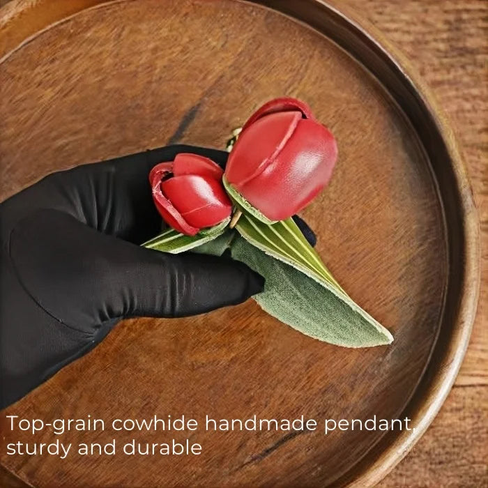 Handmade Tulip Leather Bag Charm – Full-Grain Cowhide Flower Pendant | Artisan Handcrafted Accessory | Unique Leather Handbag Decoration