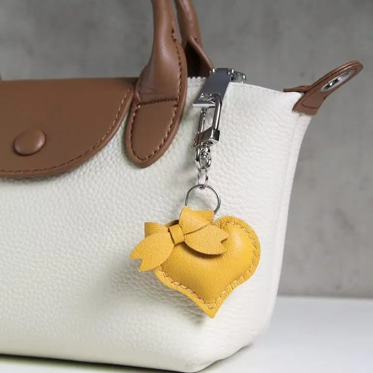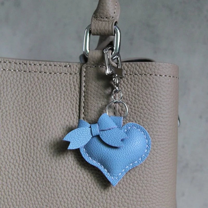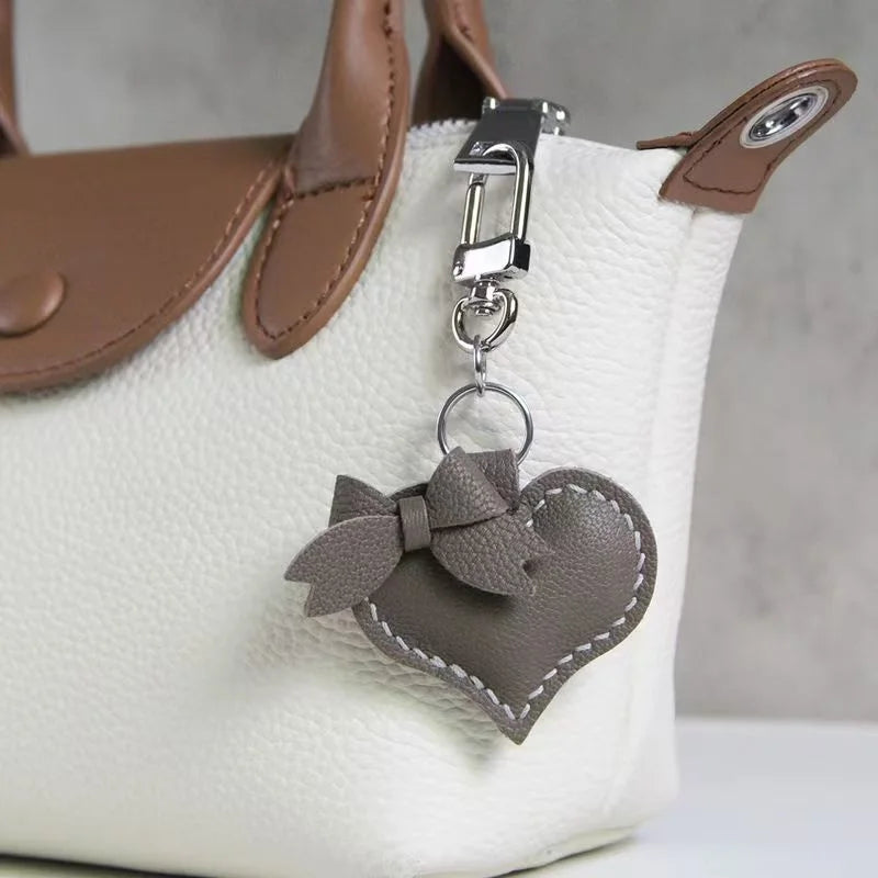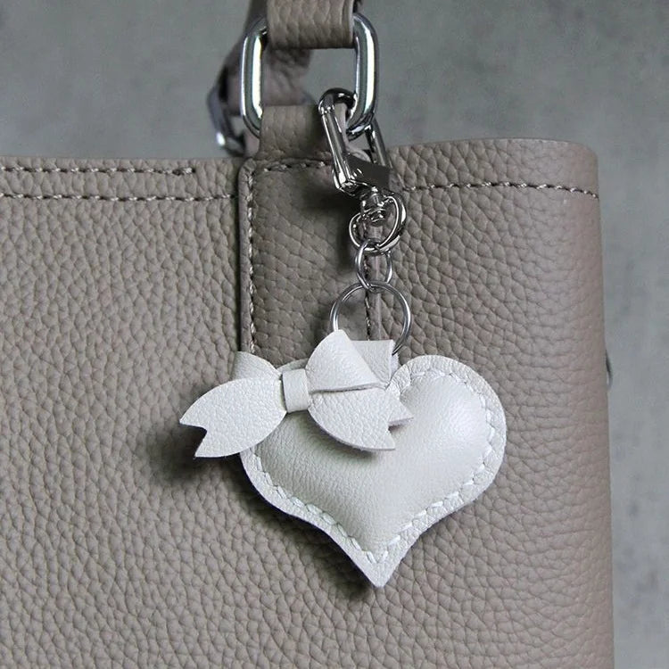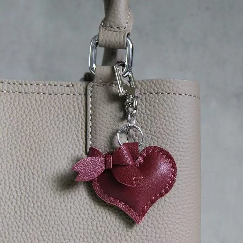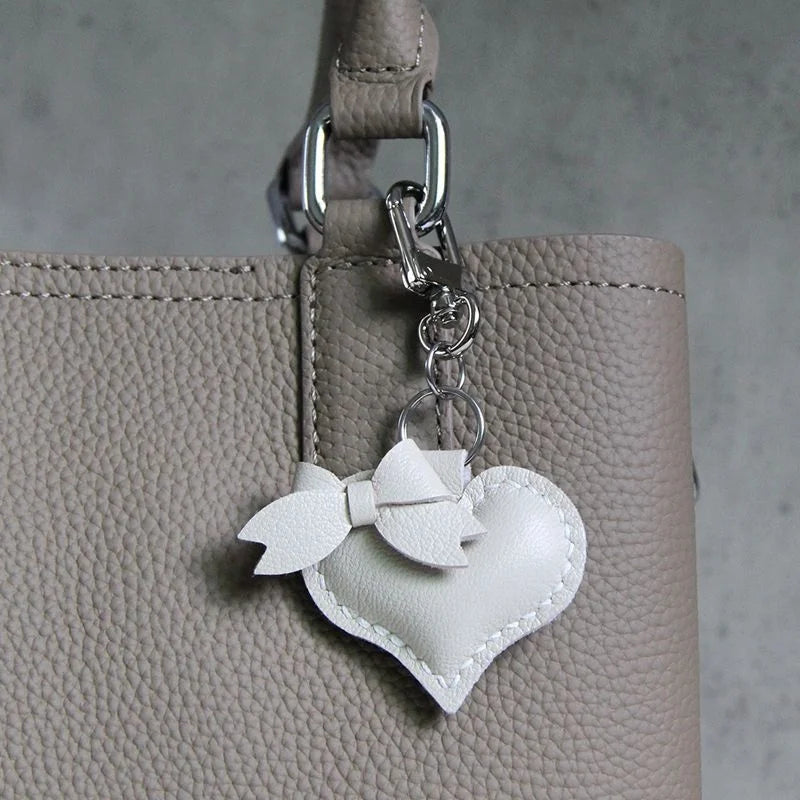 Heart-Shaped Bow Tie Leather Bag Charm | Minimalist Design | Handcrafted | Versatile and Elegant Gift Hook Style