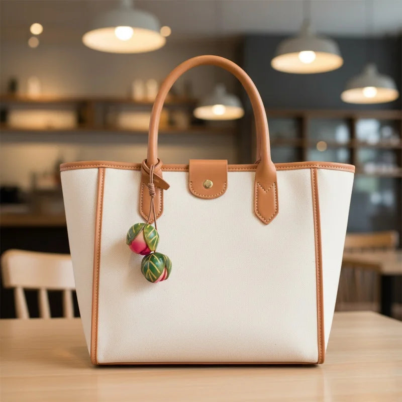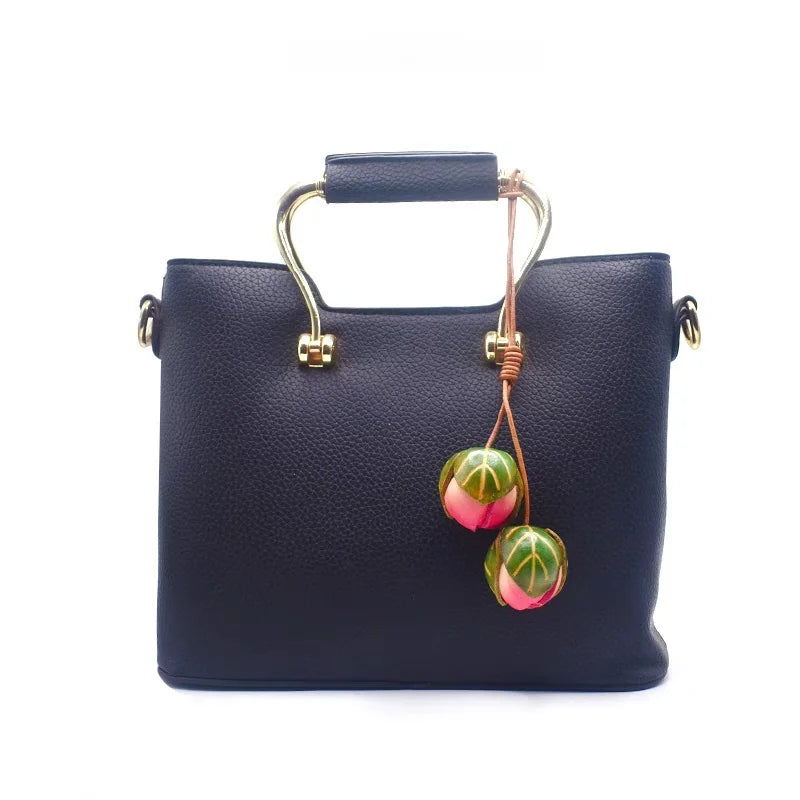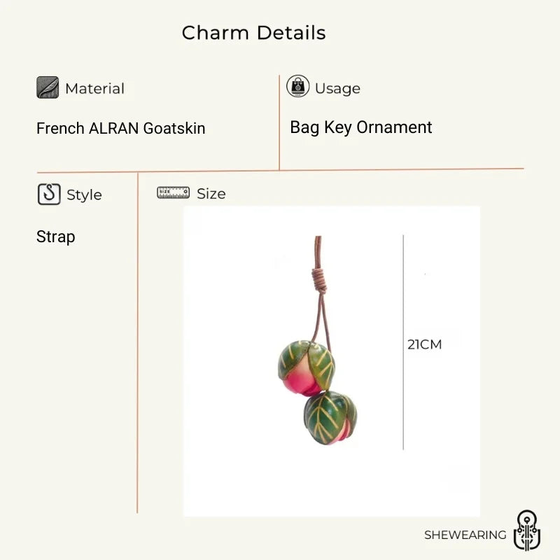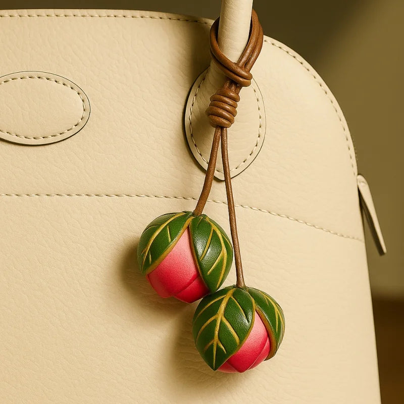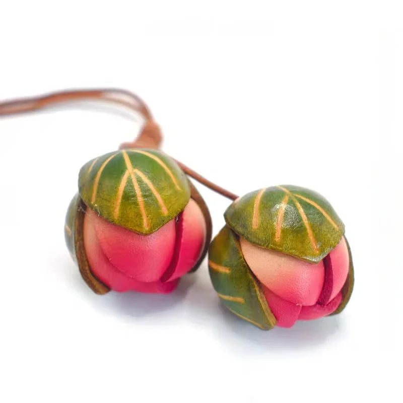 Its soft yet structured shape hangs gracefully from a durable leather cord, making it easy to attach to handbags, backpacks, or use as a whimsical keychain. Measuring approximately 21 cm in length, it’s the perfect size for adding elegance without overwhelming your accessories. Whether as a gift or a personal statement, this charm invites you to slow down and savor the moment — a delicate bloom that never fades.