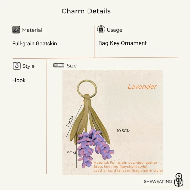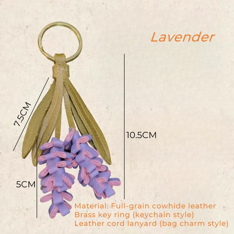 Lavender Blossom Leather Bag Charm – Handcrafted Full-Grain Leather Pendant | Unique Keychain with Botanical Elegance | Artisan Gift for Nature Lovers