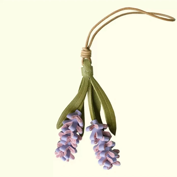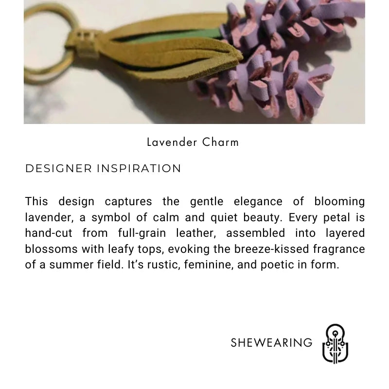 Inspired by fields of lavender swaying in the breeze, this handcrafted leather charm turns a familiar flower into a soft, wearable sculpture. Made from full-grain cowhide, each floral strand is carefully hand-cut and assembled to mimic the texture and shape of real lavender blooms.