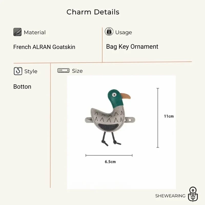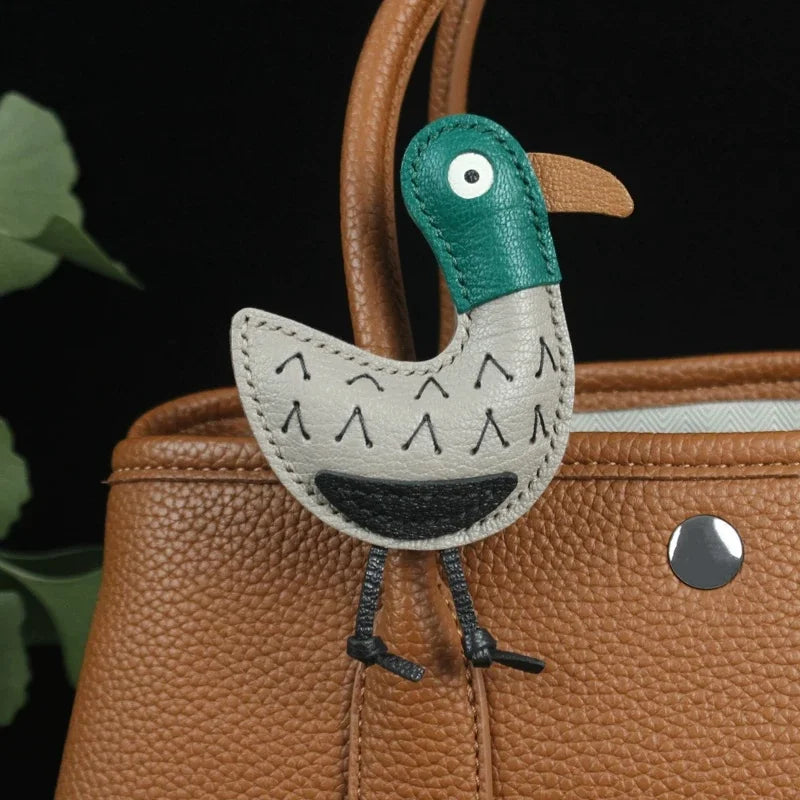 Lazy Duck Leather Bag Charm – Handmade Full-Grain Leather Pendant | Whimsical Duck Keychain for Bags | Playful Minimalist Animal Accessory