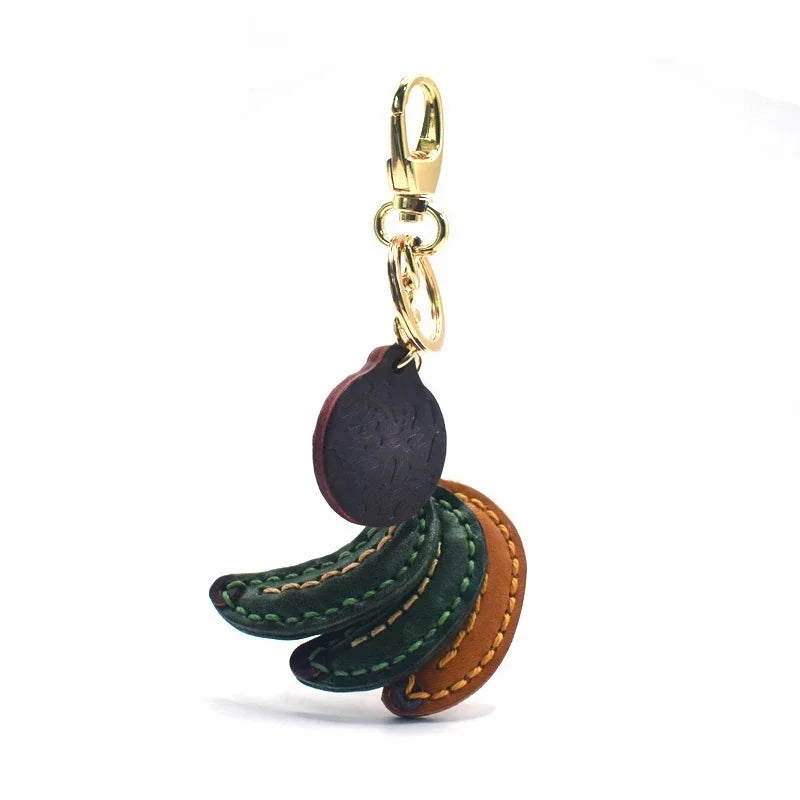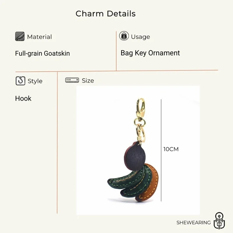 Lucky Banana Leather Bag Charm – Handmade Full-Grain Cowhide Fruit Keychain | Playful Yellow Accessory | Unique Charm for Bags & Gifts