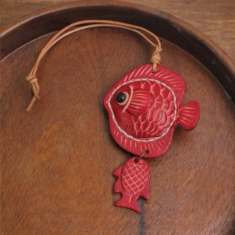 Lucky Fish Leather Bag Charm – Handmade Full-Grain Leather Pendant | Symbol of Joy & Prosperity | Retro DIY Accessory for Bags & Keys