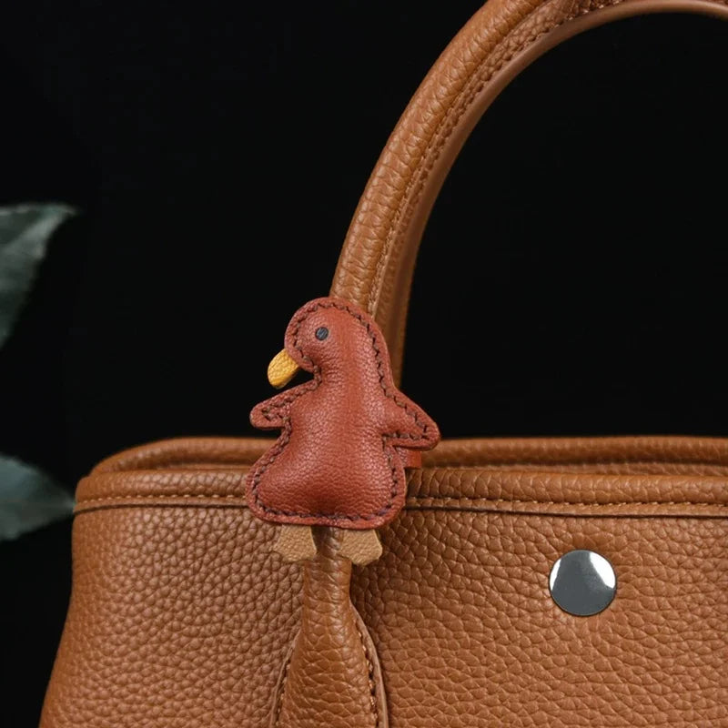 Lucky Roast Duck Leather Bag Charm – Handmade Full-Grain Leather Pendant | Whimsical Culinary-Inspired Accessory | Unique Symbol of Good Fortune & Style