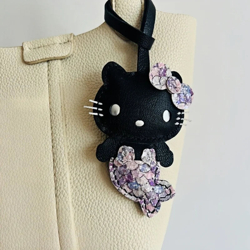 Mermaid Cat Leather Bag Charm – Handmade Whimsical Keychain | Fantasy Cat Pendant | Cute Gift for Mermaid Lovers