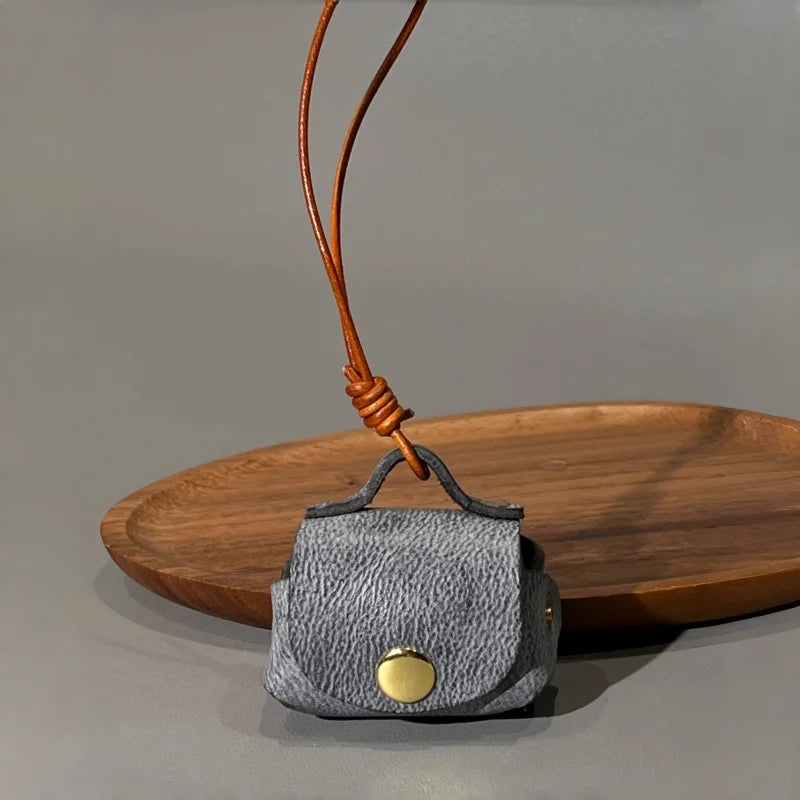 Mini Leather Earphone Pouch Bag Charm – Handcrafted Full-Grain Leather Storage Case | Functional Handbag Accessory | Thoughtful Gift for Her