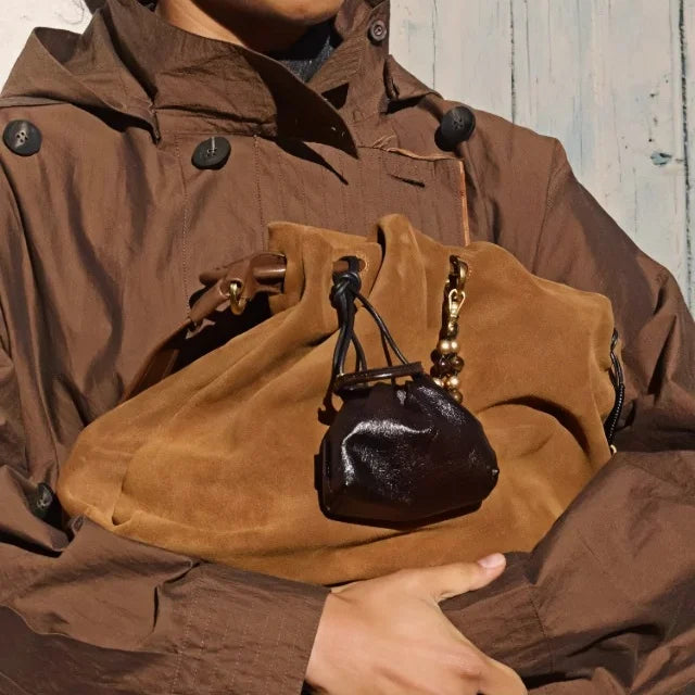 Mini Suede Leather Lipstick Charm – Vintage-Inspired Small Bag Pendant | Multifunctional Organizer for Lipstick & Accessories | Chic Handcrafted Bag Charm
